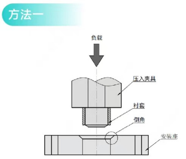注:为了方便无油衬套安装,可在安装座内径端部进行倒角或R角处理,并对安装座内径和衬套外径涂抹少量润滑脂或润滑油。