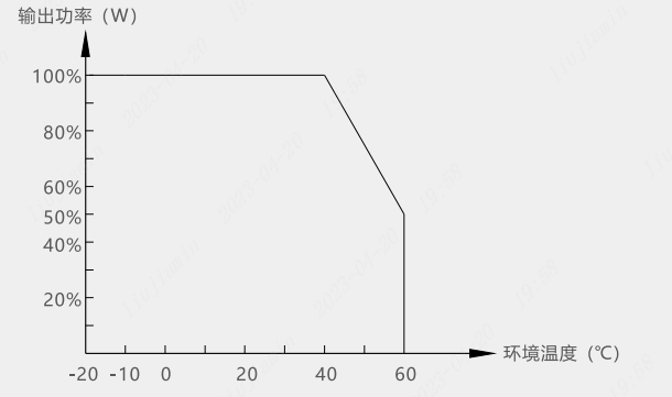 环境温度:-20℃ ~60℃,环境温度超过 40℃时 ,应降容使用 ( 降容曲线见下方描述 )。