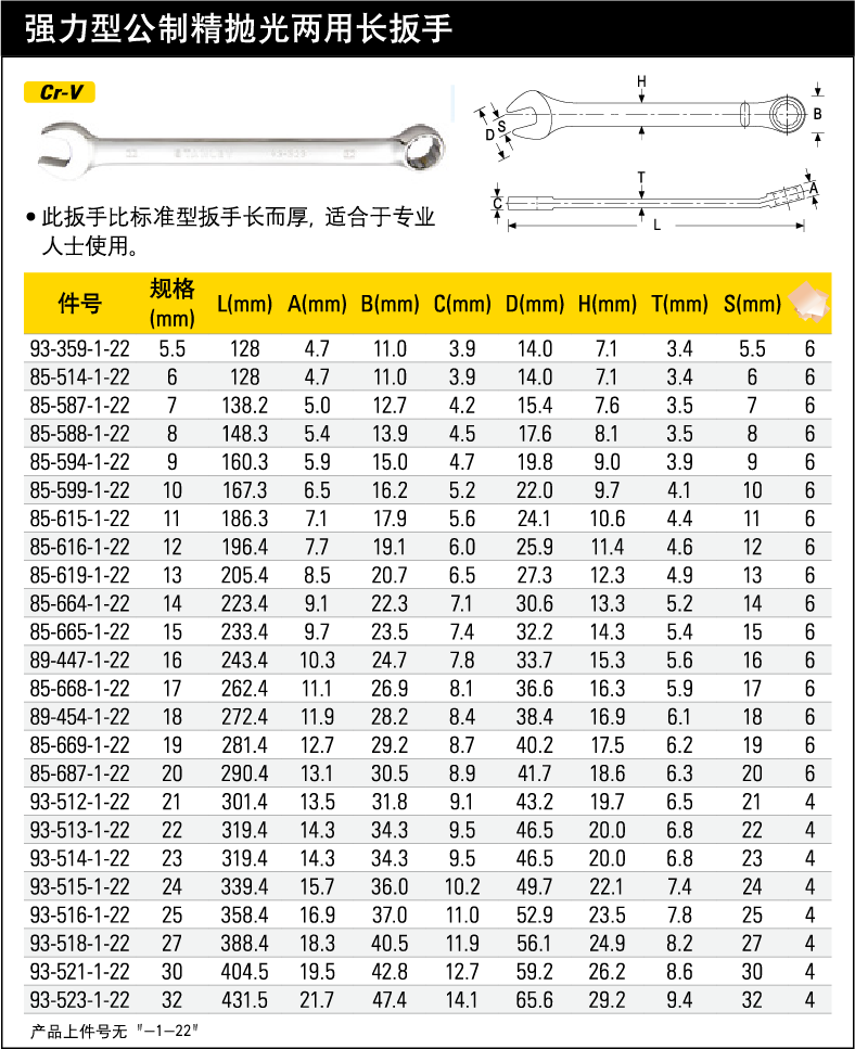 ●此扳手比标准型扳手长而厚,适合于专业人士使用。