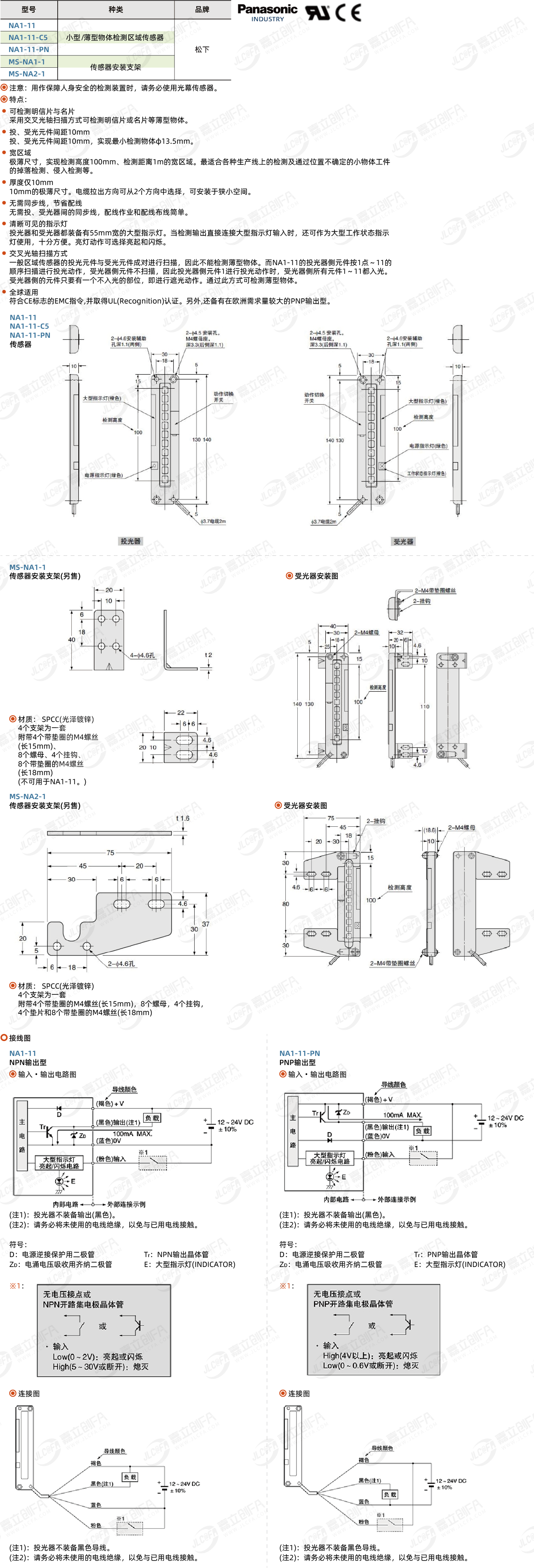 已选属性 适用类型:PNP | 检测距离:170~1000 | 电缆长度:2m | 系列:NA1 | 种类:小型/薄型物体检测区域传感器 | 动作模式:可用切换开关选择遮光时ON或OFF