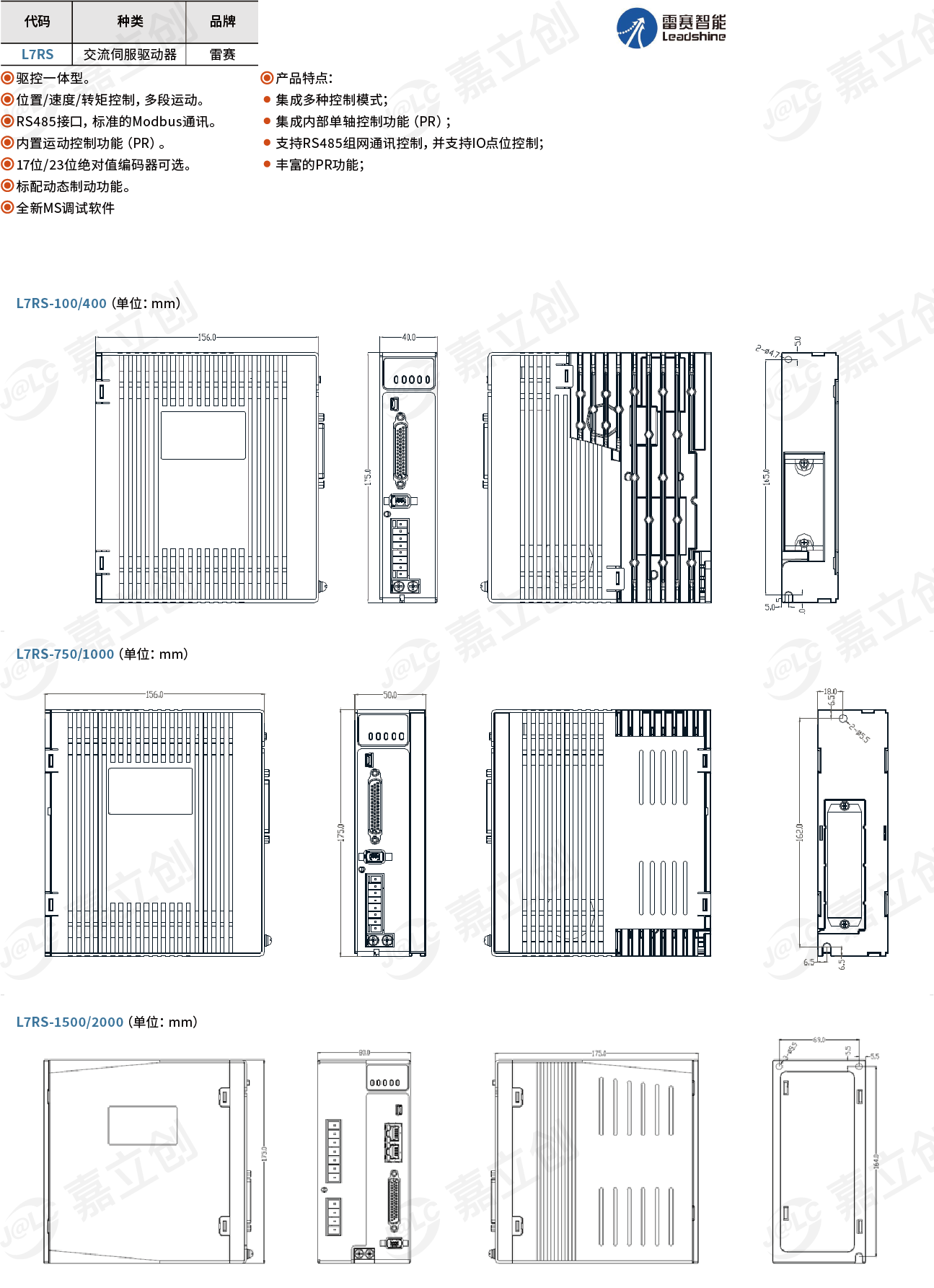 雷赛智能(LEADSHINE) 伺服驱动器 L7系列 750W L7RS-750