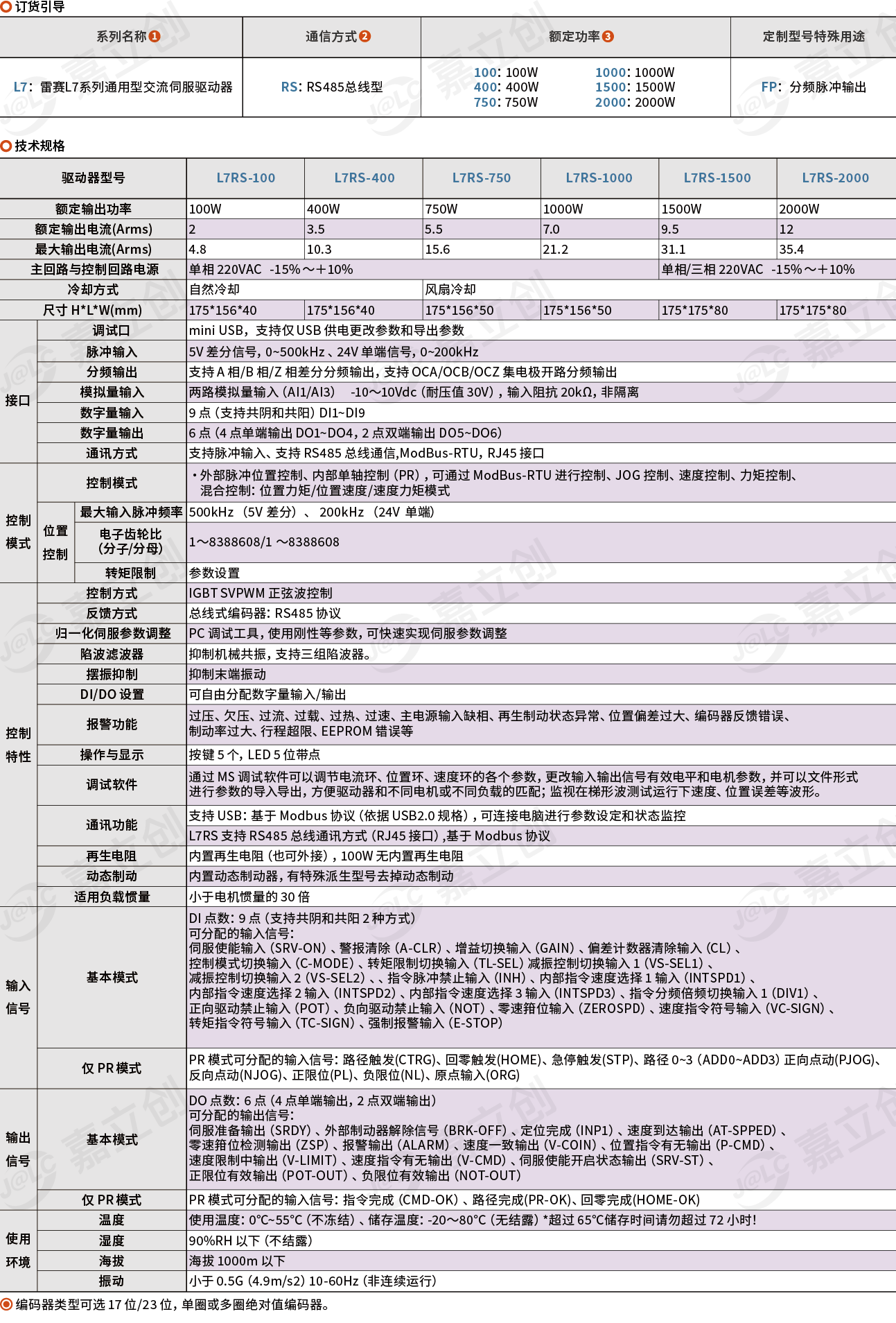 已选属性 功率(W):750 | 系列:L7 | 电压等级:AC220V | 通讯方式:RS485总线型 | 种类:交流伺服驱动器
