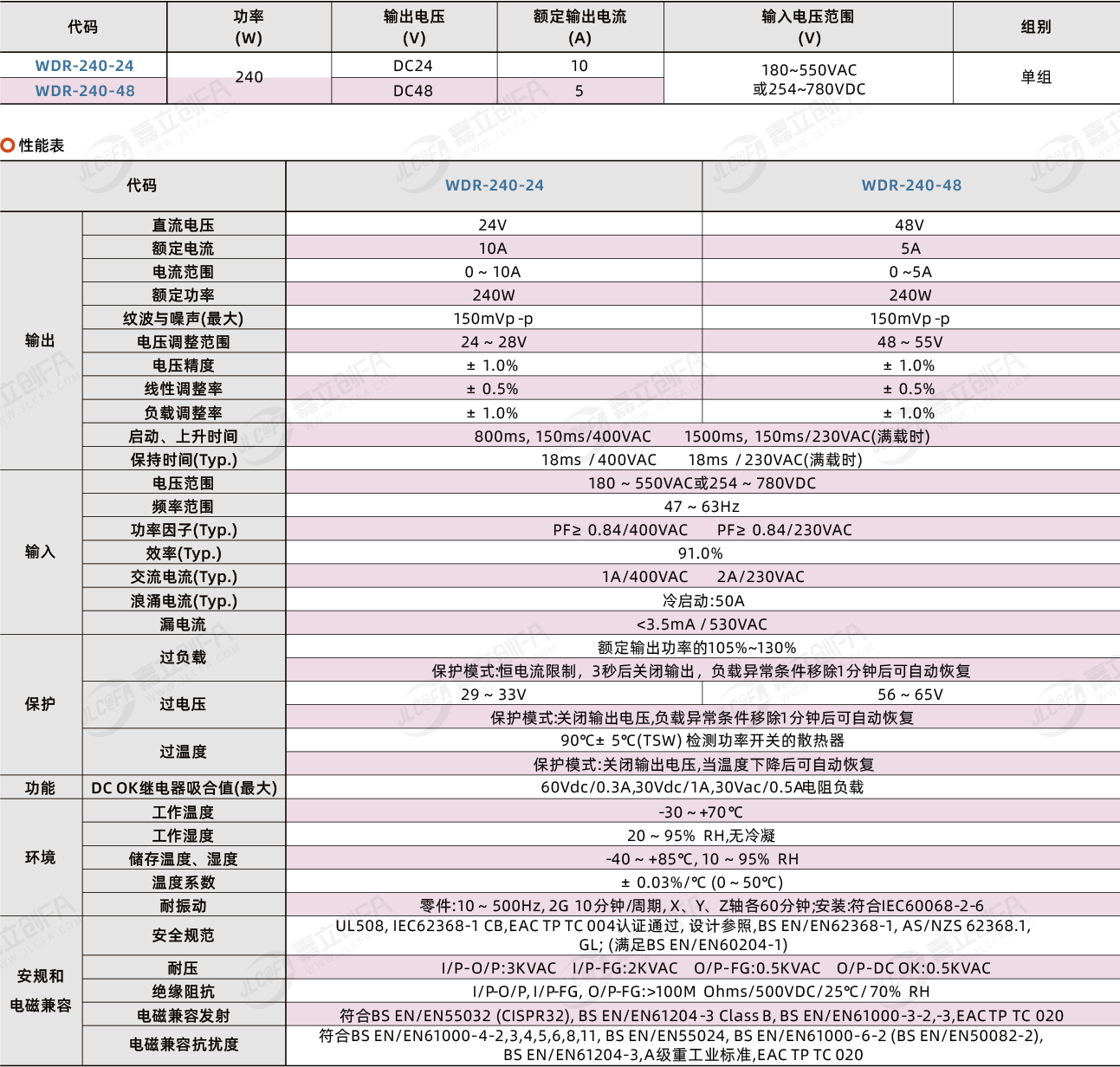 | 代码 | WDR-240-24 | WDR-240-48 |