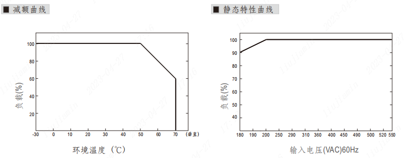 | 启动、上升时间 | 800ms, 150ms/400VAC 1500ms, 150ms/230VAC(满载时) |