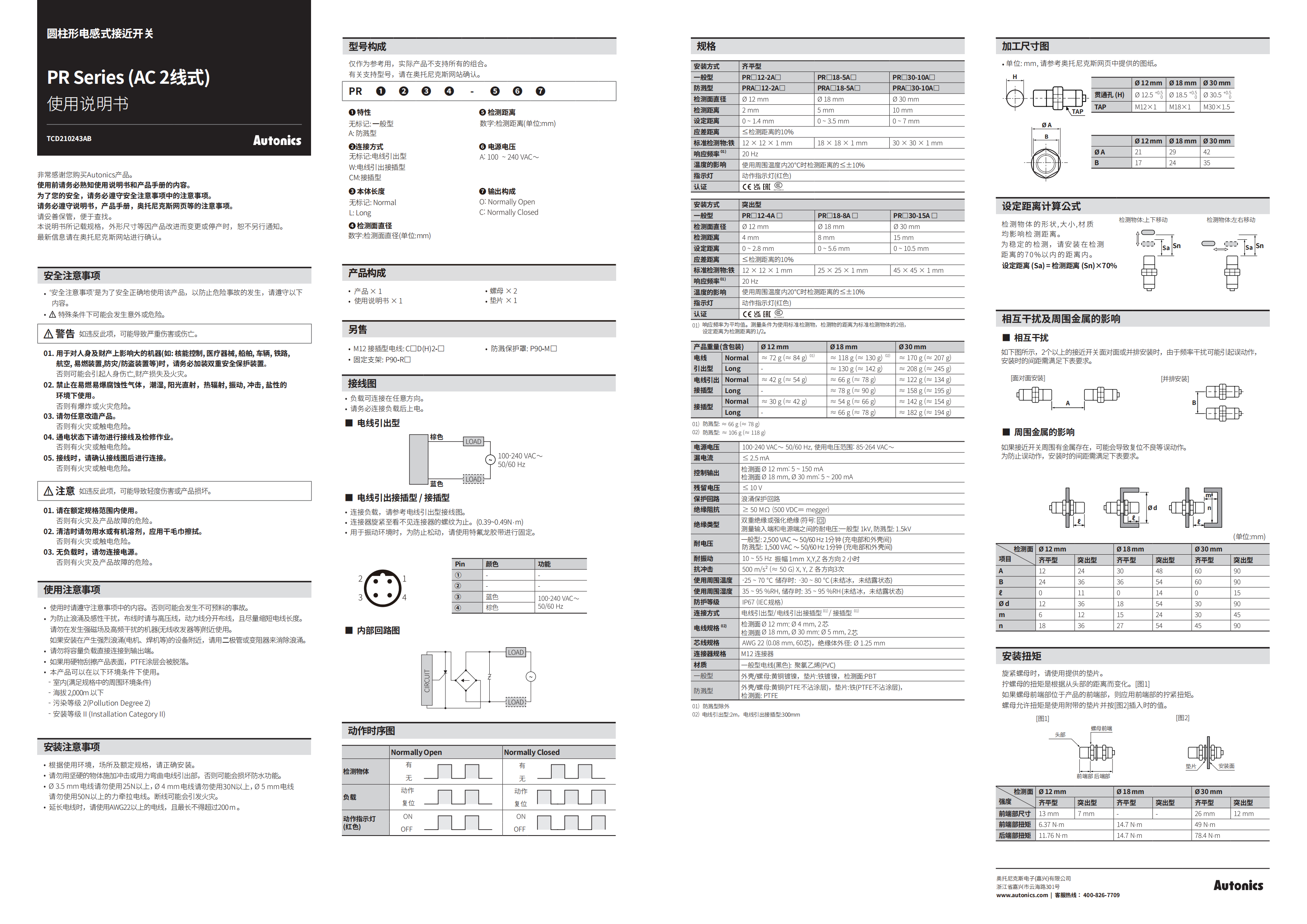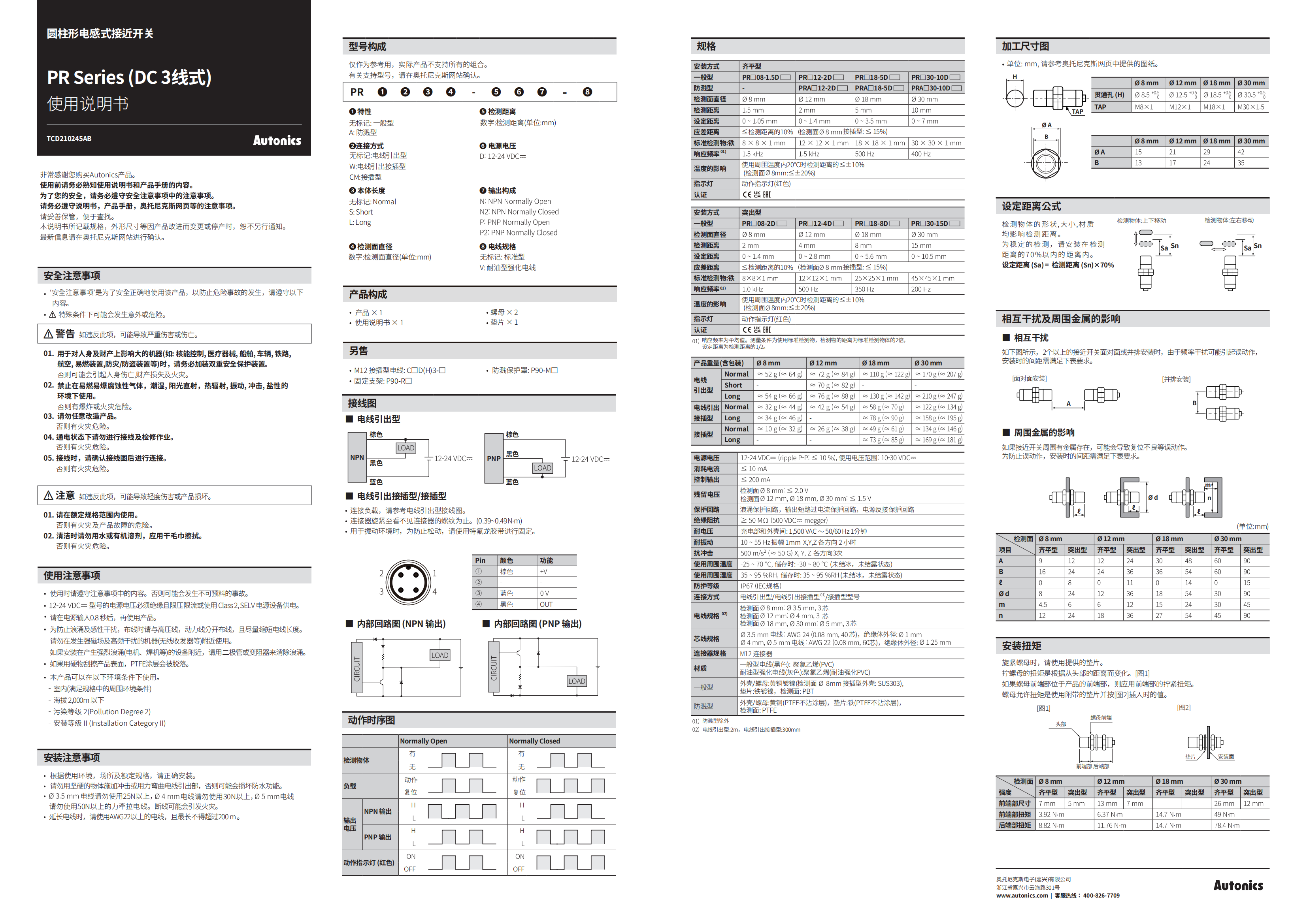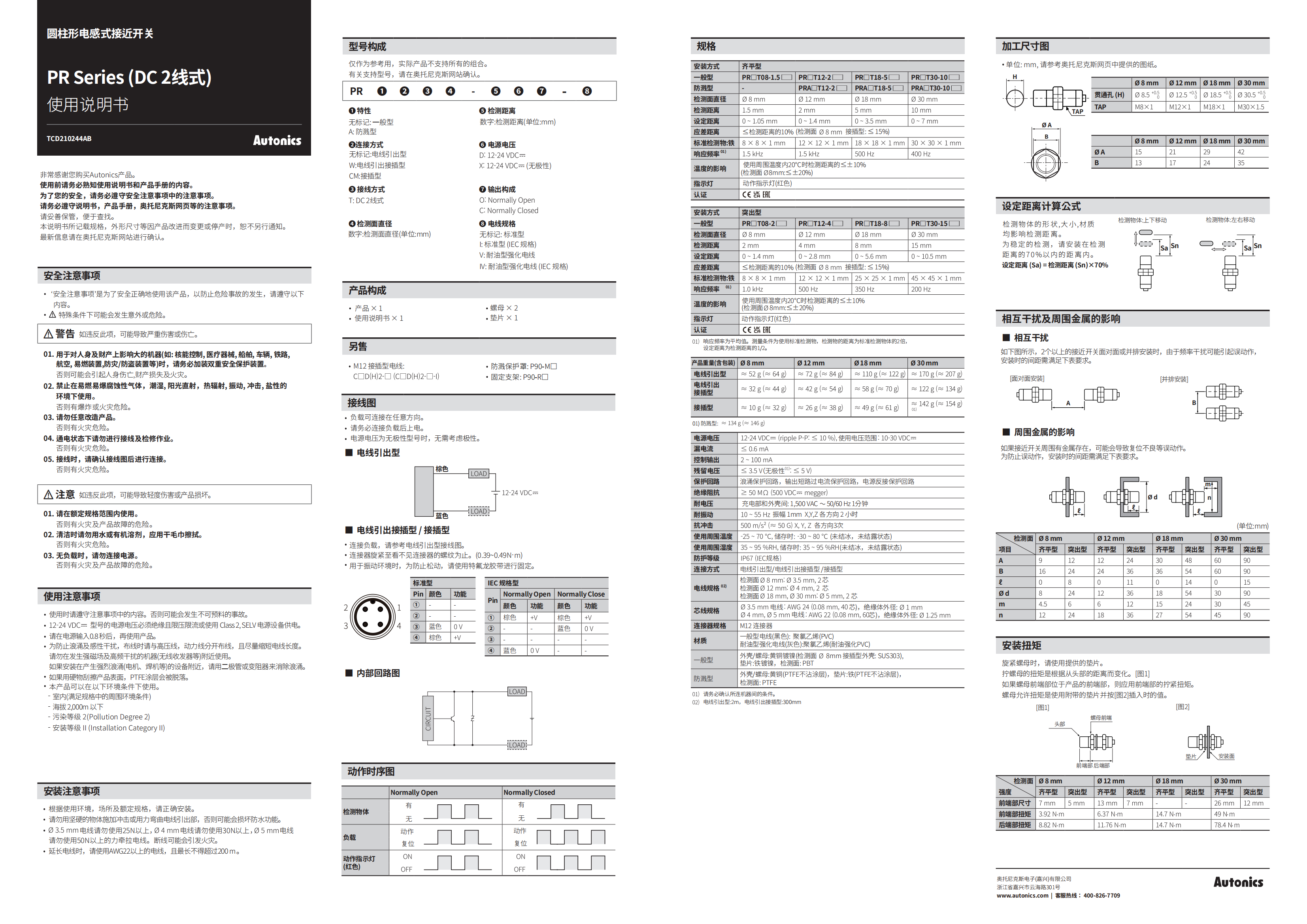 奥托尼克斯(AUTONICS) 接近传感器 PRCM系列 电感式 圆柱形带螺纹 PRCM12-4DP2