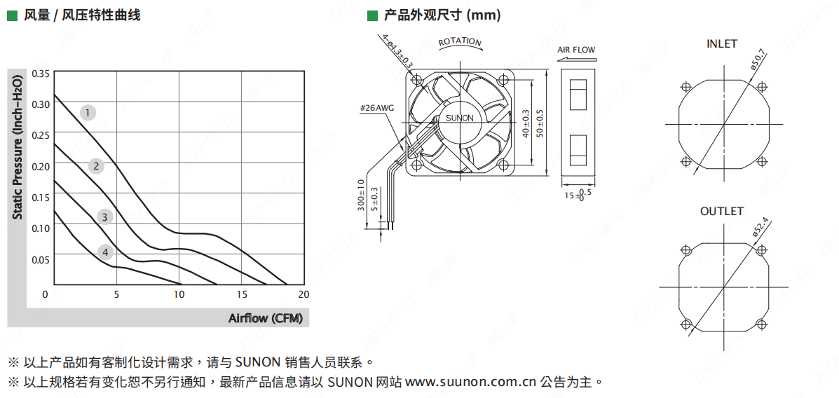 已选属性 电压:24VDC | 形状:方形 | 特点:高品质型 | 轴承类型:汽化轴承 | 外形尺寸:50*50*15 | 系列:M系列 | 种类:轴流风扇