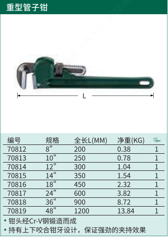 已选属性 种类:钳子 | 单件/组套:单件 | 类型:重型管子钳 | 规格:10"
