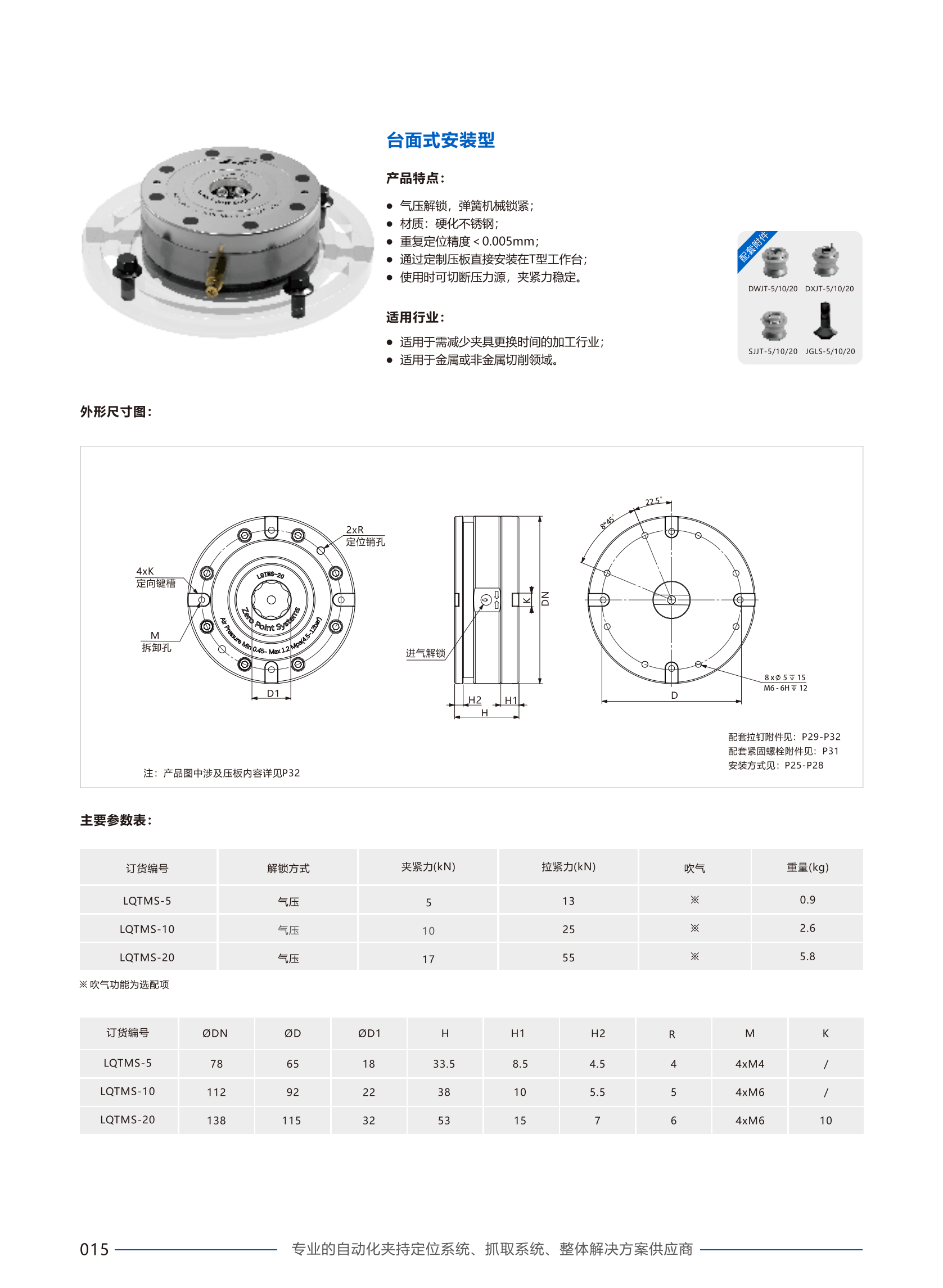 已选属性 产品外形:外形尺寸64 | 传感器:有 | 底部螺栓过孔:无 | 种类:零点定位卡盘 | 系列:LQTM | 类型:定位卡盘