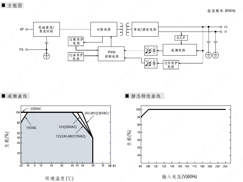 保持时间(Typ.)60ms/230VAC        12ms/115VAC(满载时)