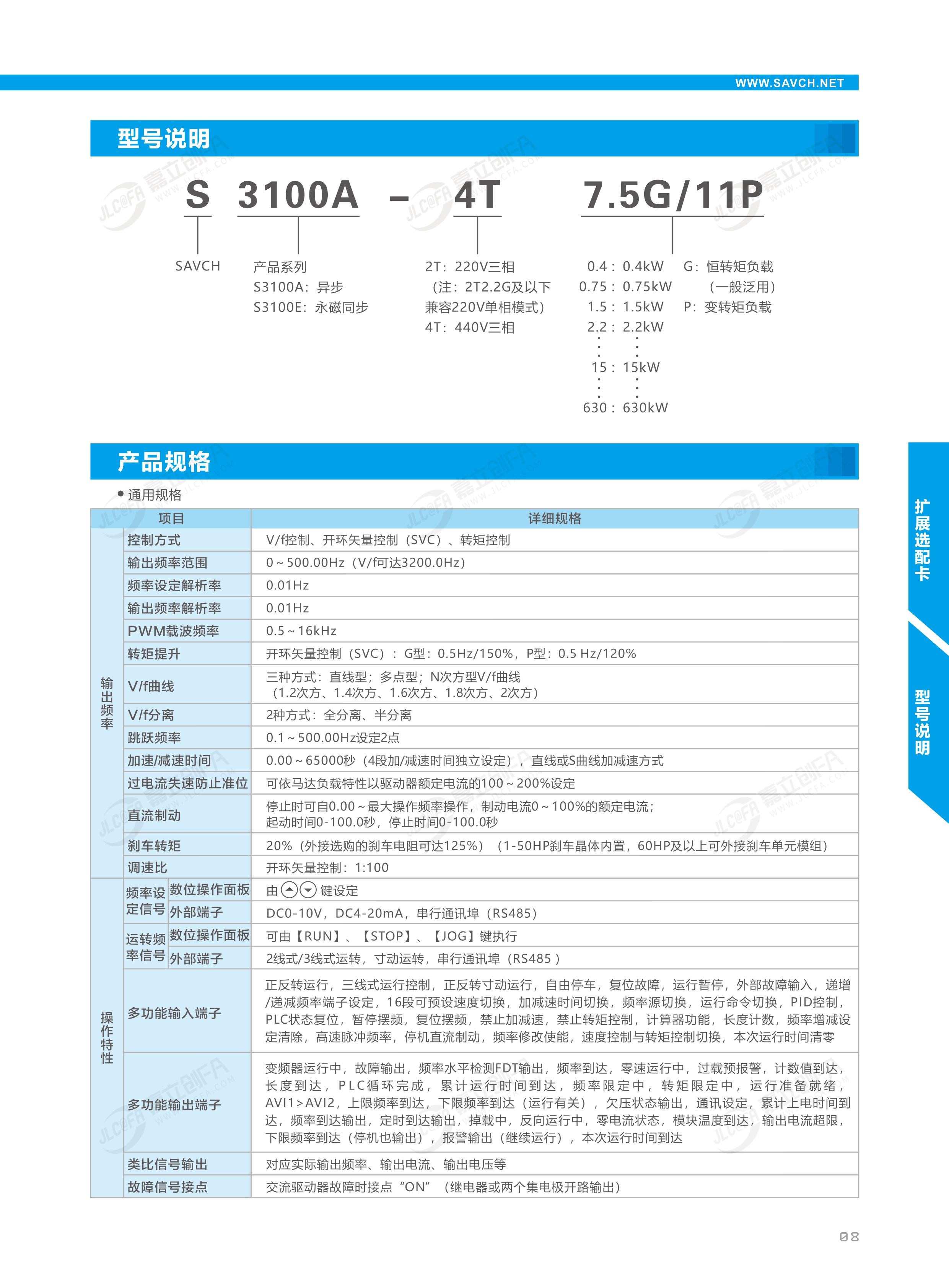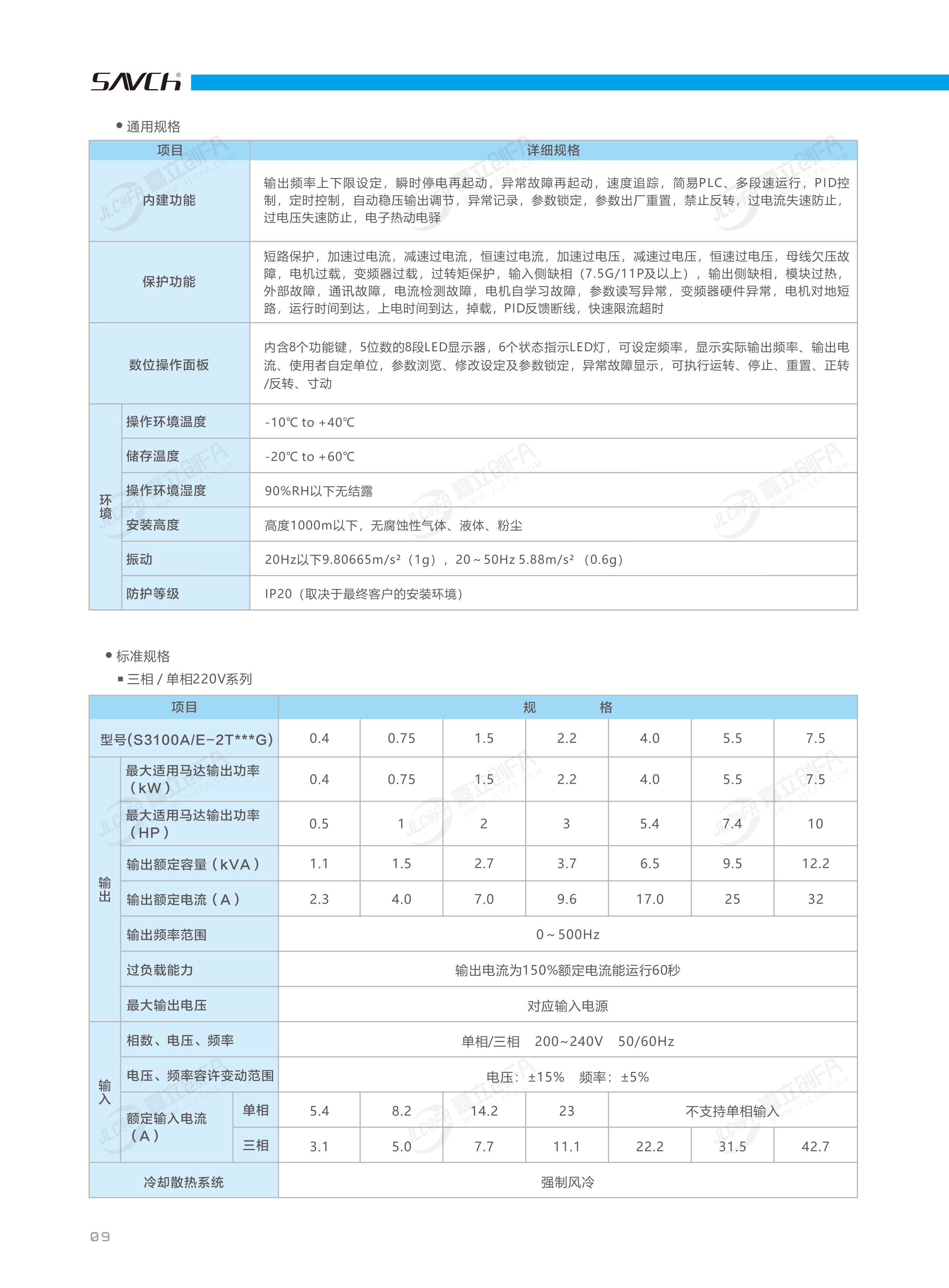 三碁电气(SAVCH) 变频器 S3100A系列 通用矢量型 单相/三相220V 0.75kW