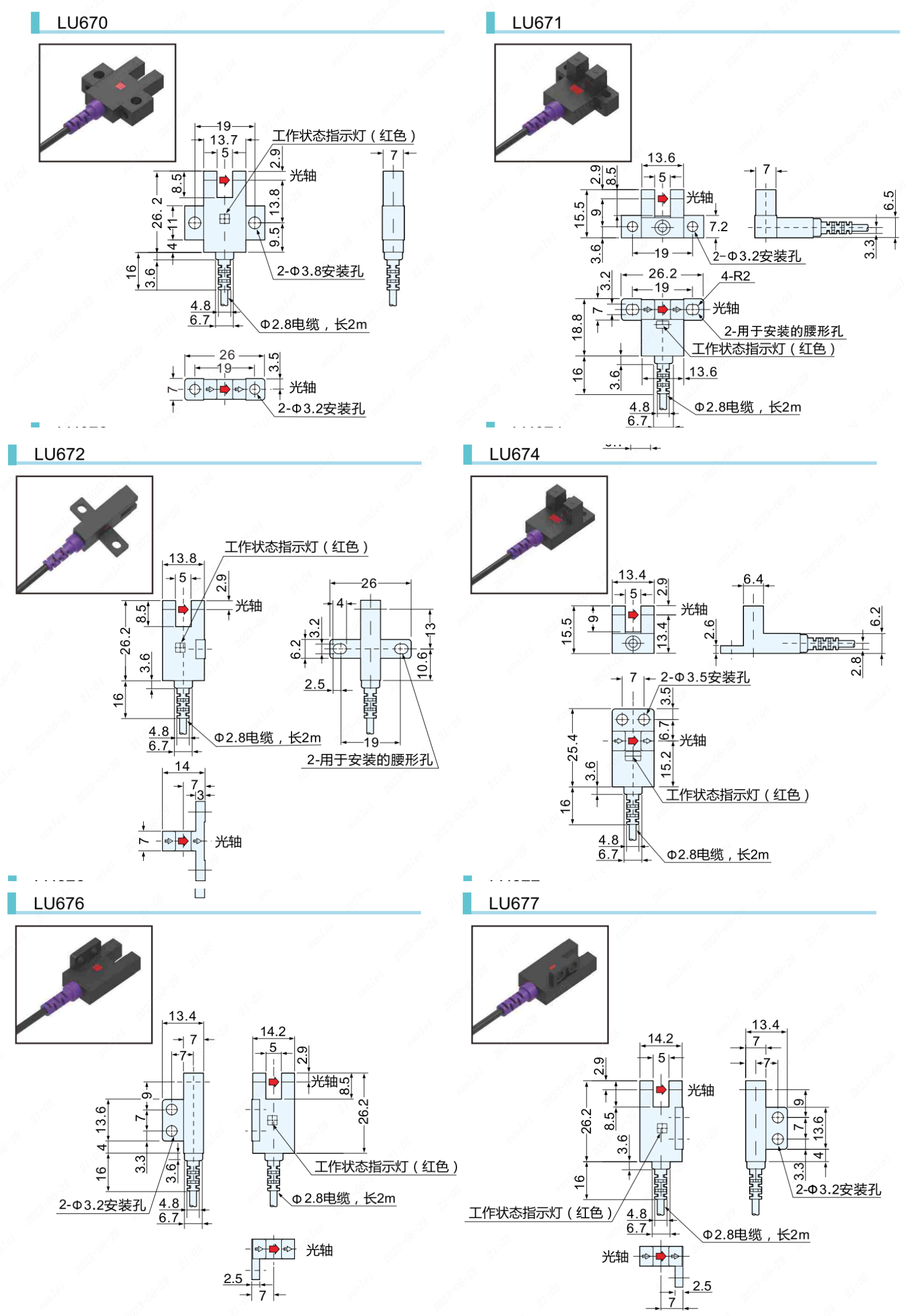 | PNP输出 | LU670-5PA | LU671-5PA | LU672-5PA | LU674-5PA | LU676-5PA | LU677-5PA | |