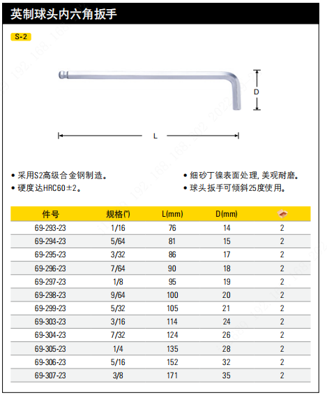 已选属性 种类:扳手 | 单件/组套:单件 | 类型:英制球头内六角 | 规格:5/64