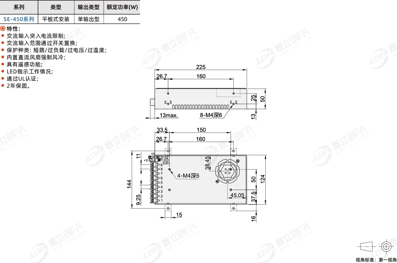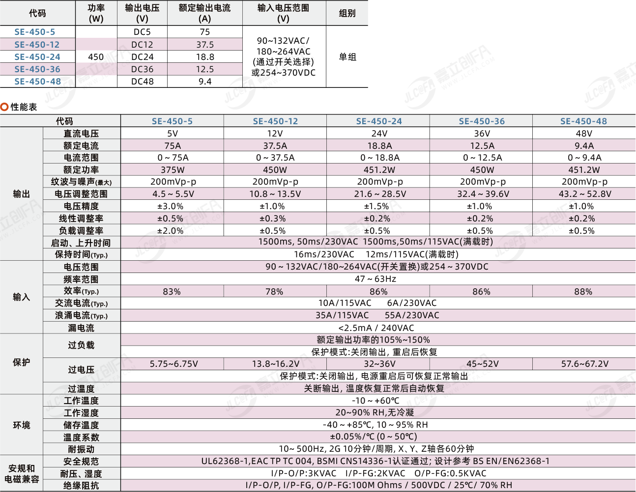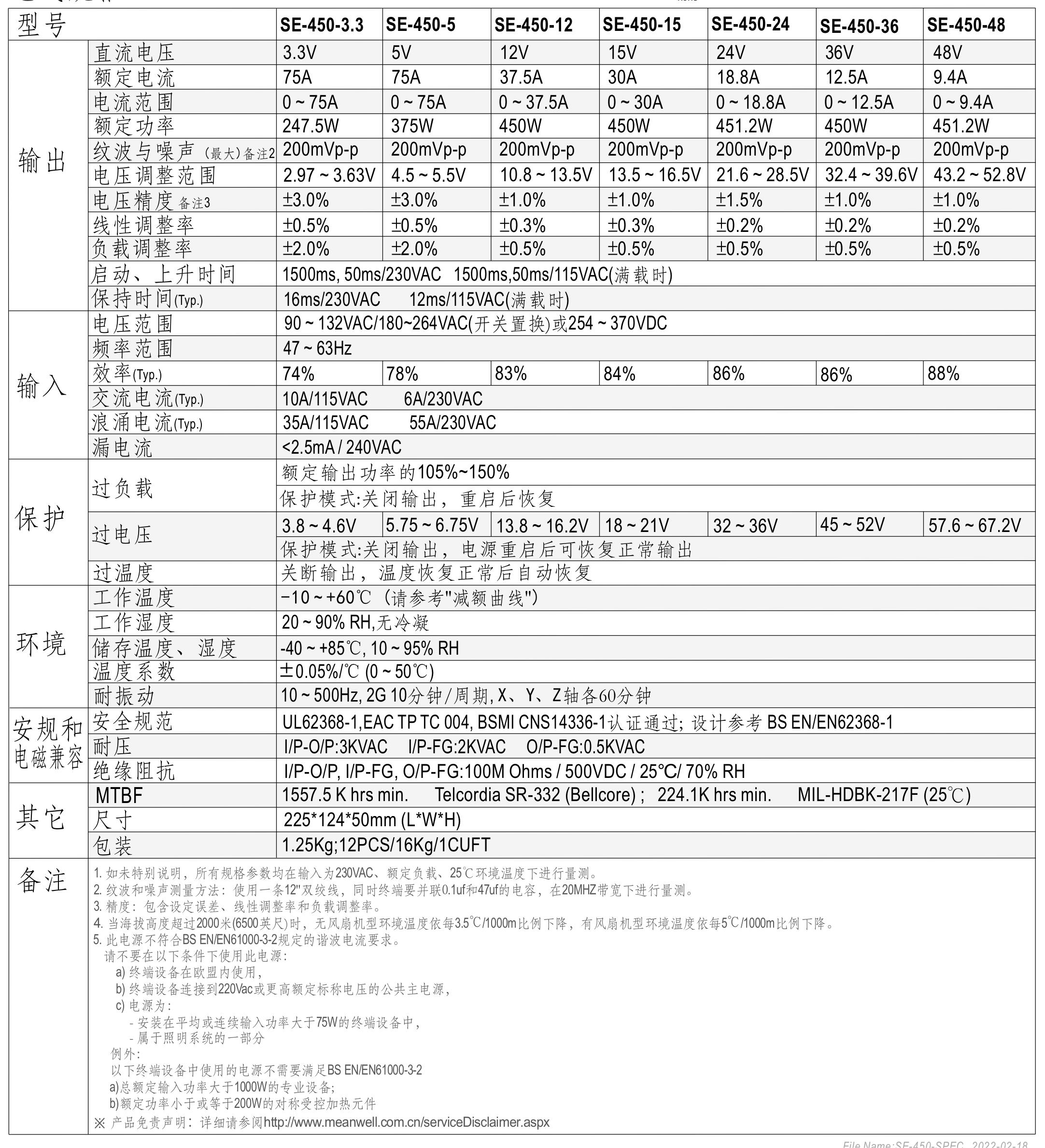 已选属性 种类:开关电源 | 系列:SE | 安装方式:平板式安装 | 类型:中高功率经济型 | 输出类型:单组输出 | 功率(W):450 | 输出通道CH1电压:36VDC