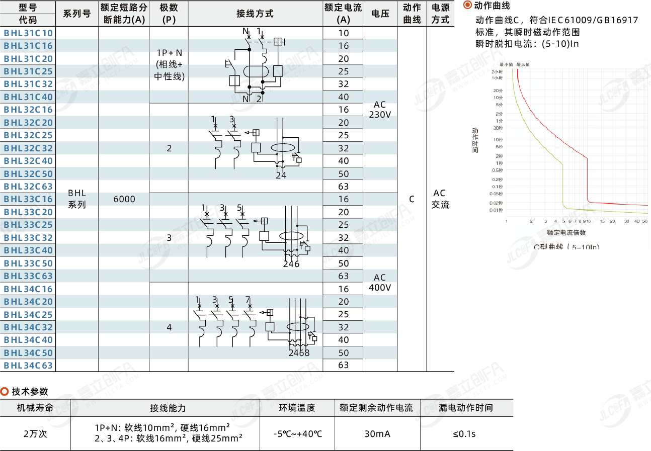 已选属性 脱扣特性:C | 分断能力:6KA | 额定电压:230VAC | 种类:小型漏电保护断路器 | 系列:BHL | 额定电流:16A | 极数:2P