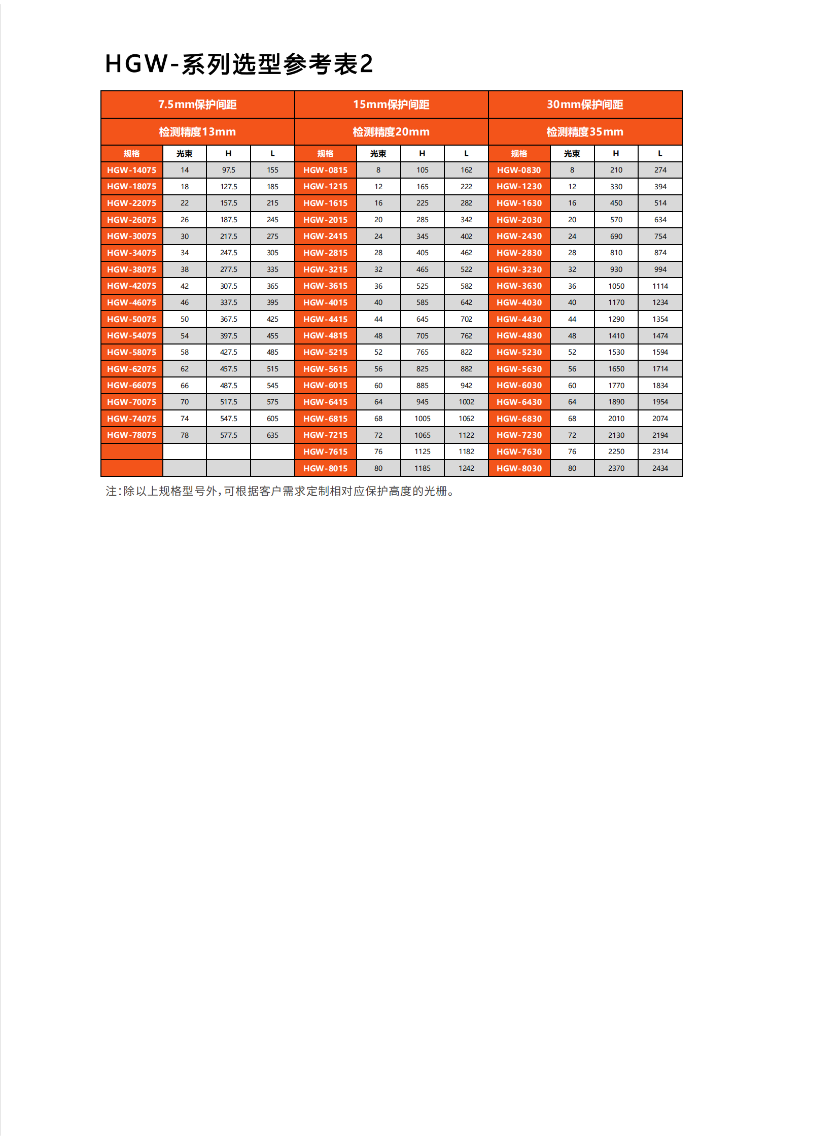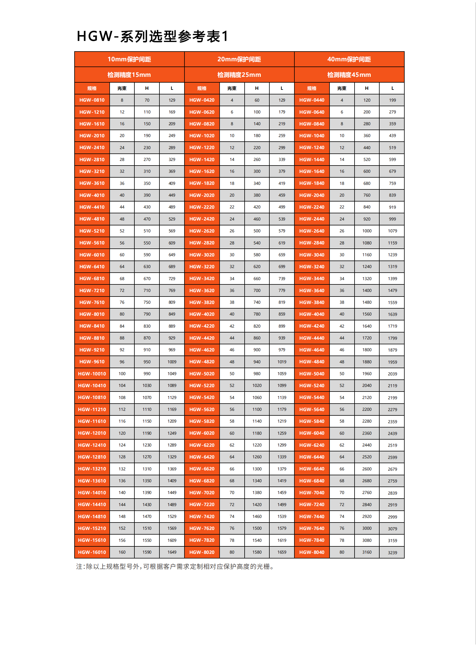 国产 安全光栅传感器 HGW系列 自动化安全型 40mm间距16个光轴数 L2侧装支架安装