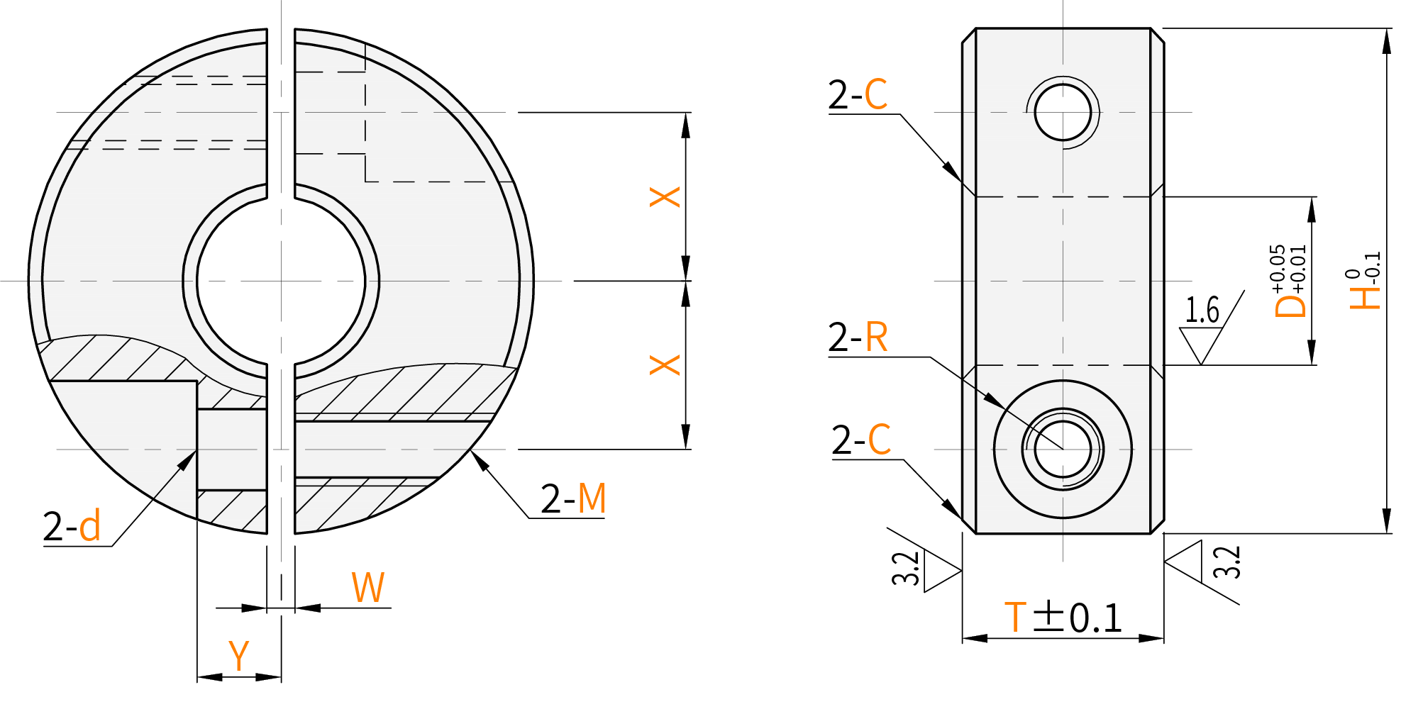 种类: 固定环类型: 平衡型轴固定方式: 分离型切割位置: 切割端面位置加工: 平面孔加工: