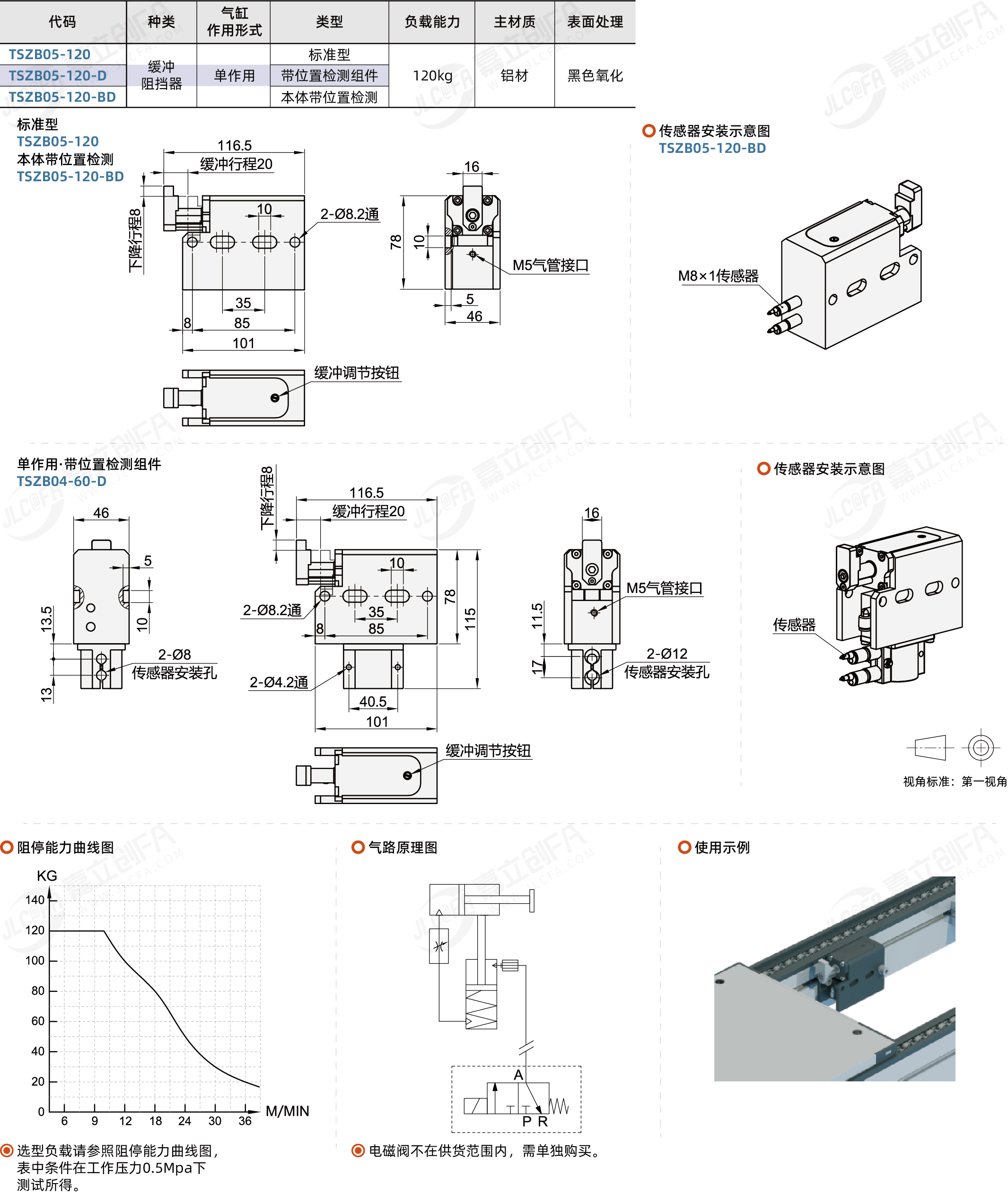 缓冲形式: 带缓冲负载能力: 120kg种类: 缓冲阻挡器是否适合锂电行业: 是否阻停放行: 表面处理: 黑色氧化材质: 铝材气缸作用形式: 单作用是否耐高温:
