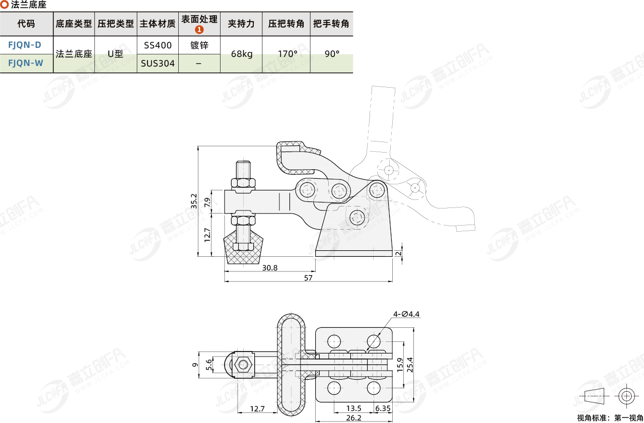 种类: 垂直压紧式夹钳底座类型: 法兰底座压把类型: U型压把夹持力(kg): 68