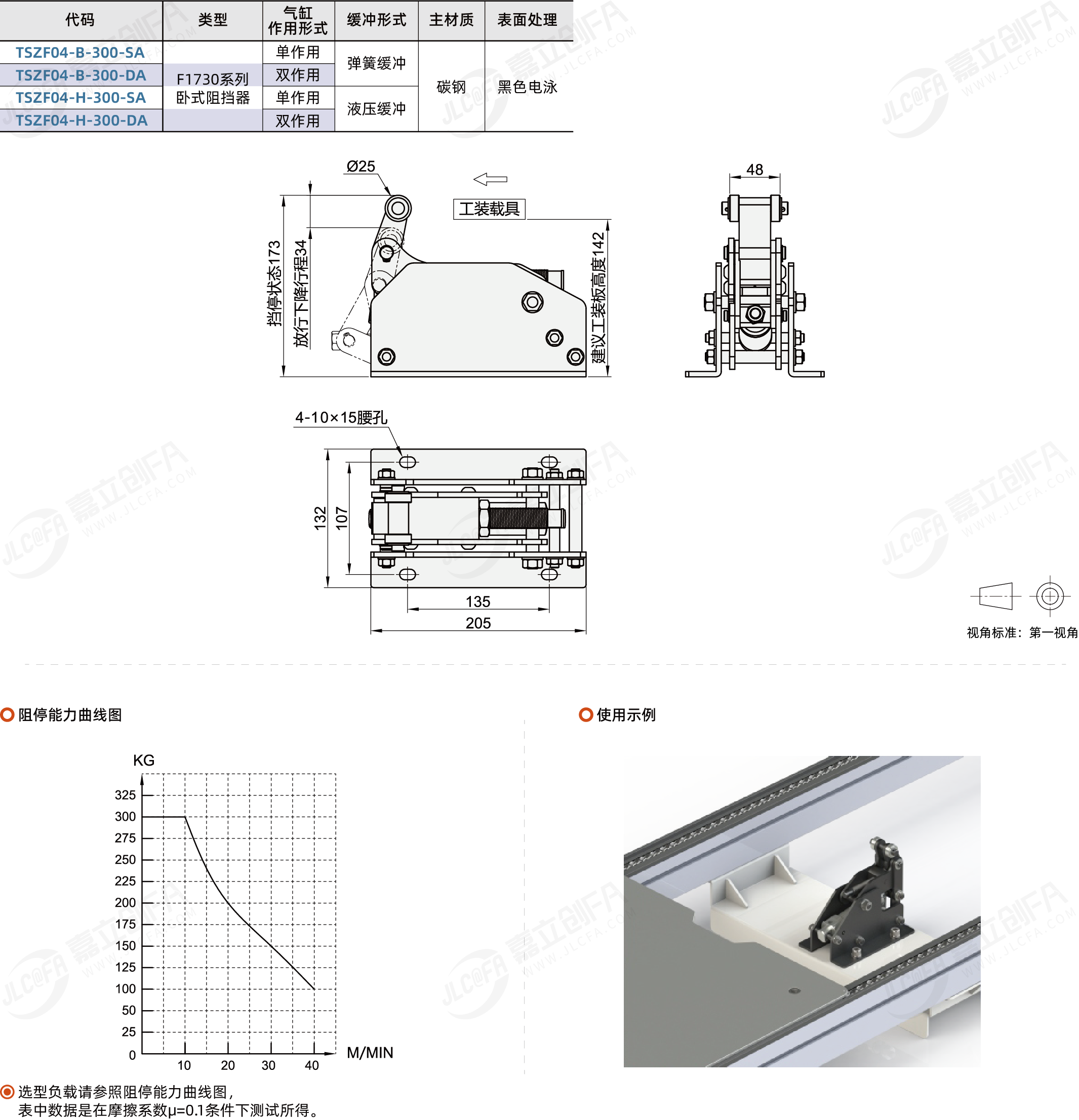 F1730系列卧式阻挡器 负载能力300kg 有缓冲 不耐高温 黑色电泳处理 碳钢材质