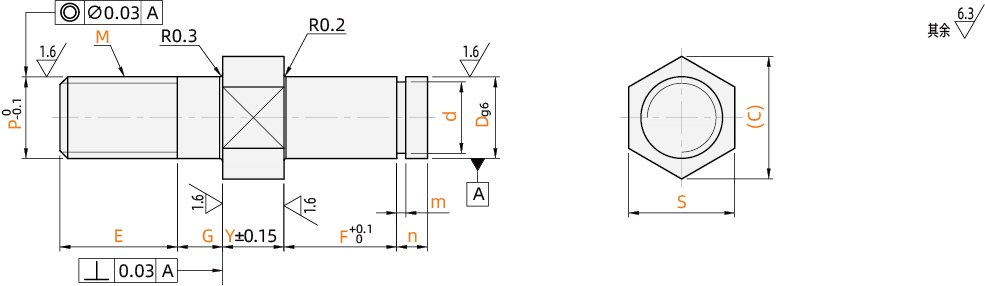 FBYM-E1-G螺纹长度固定六角形S45C发黑