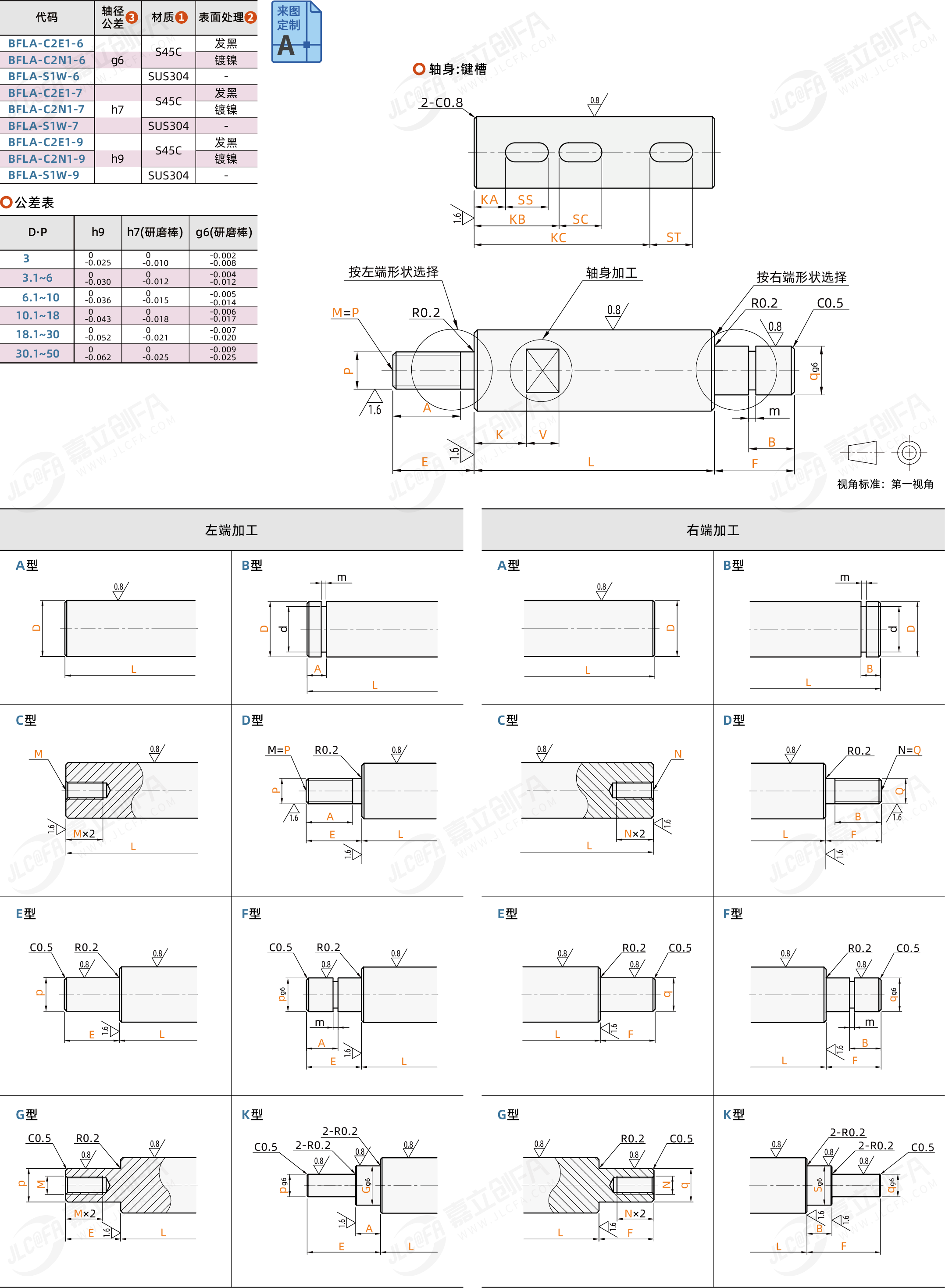 转轴 轴端自由选择型 g6/h7/h9公差