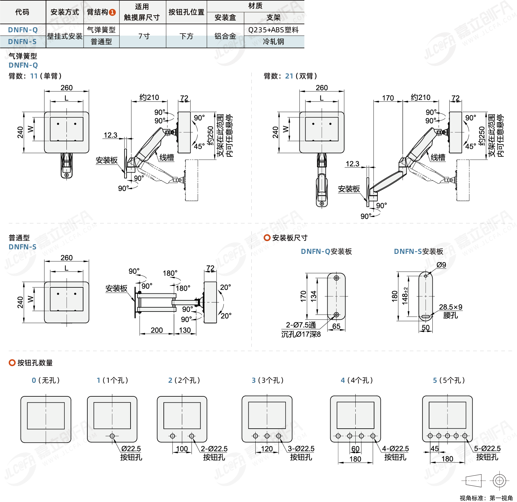 触摸屏安装盒 直面型 适用7寸触摸屏 壁挂式安装 气弹簧型/普通型