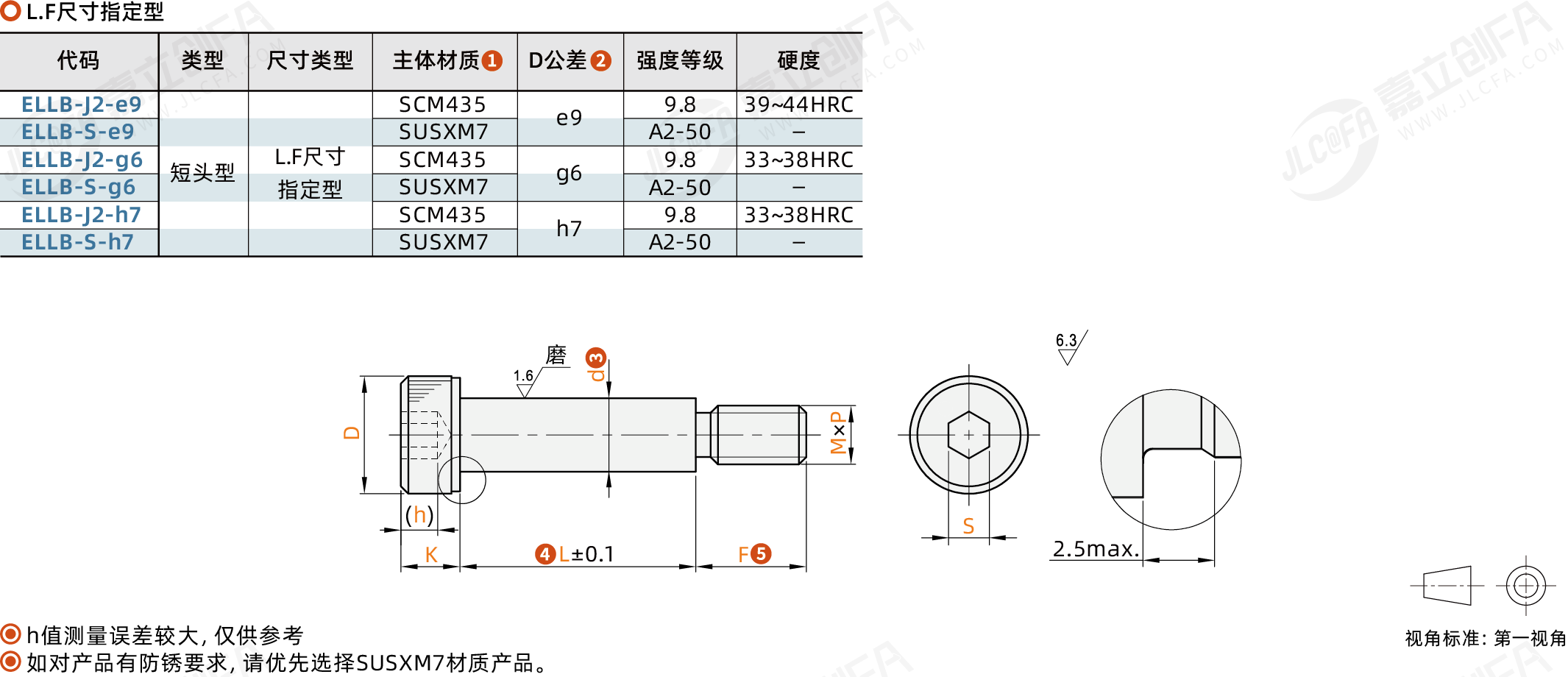 短头轴肩螺钉 L F尺寸指定型