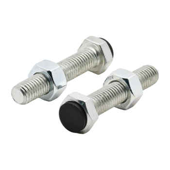 螺栓前端可选择聚氨酯或者树脂作为头部挡块,可以起到缓冲和吸收冲击以及保护工件不受损伤的效果。每个止动螺栓都有配螺母,而且锁紧拆卸非常方便,便于随时根据挡块头部的损耗程度进行更换。