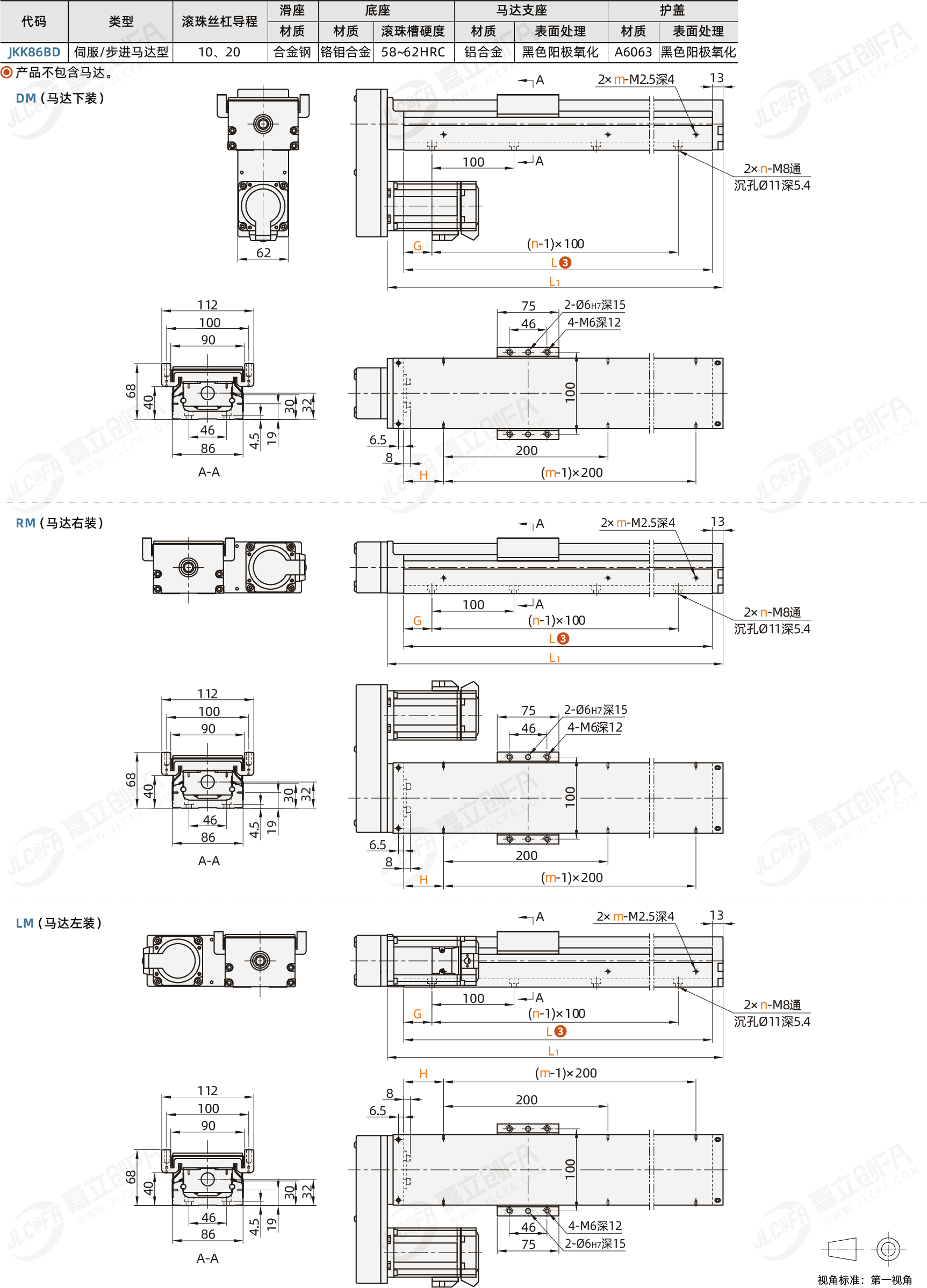 种类: KK模组系列: KK86系列 钣金护盖型 电机侧装底座宽度: 86mm类型: 钣金护盖型电机安装方式: 左折,右折,下折