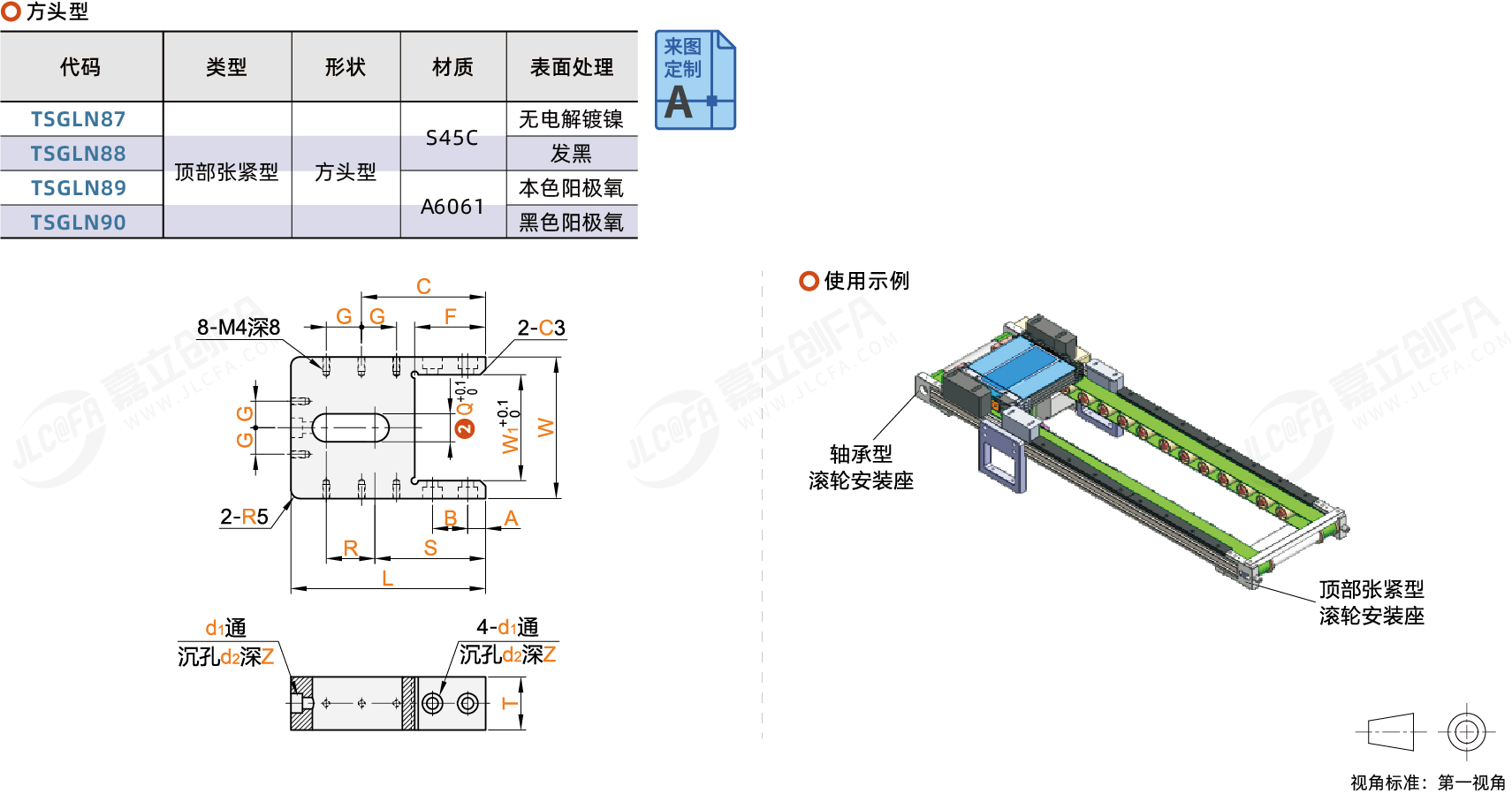 种类: 输送机滚轮安装座类型: 顶部张紧型形状: 方头型定位方向: 凹型