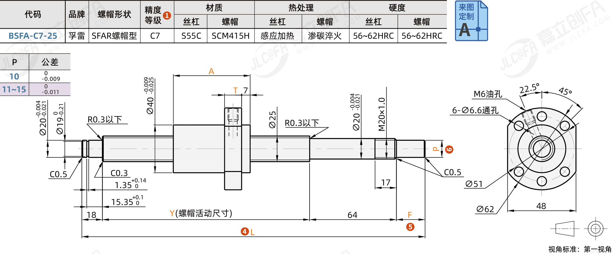 种类: 压轧滚珠丝杠精度等级: C7轴径: 25旋向: 右旋品牌: 孚雷螺帽形状: SFAR螺帽型