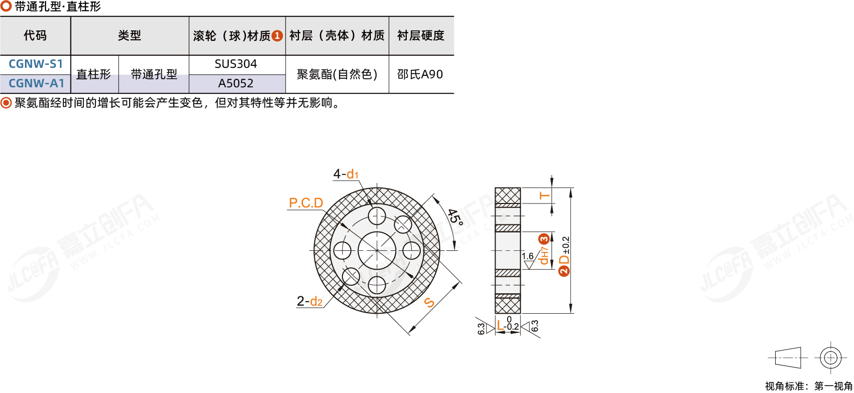 种类: 滚轮形状: 直柱型类型: 带通孔型衬层(壳体)材质: 聚氨酯衬层硬度: 邵氏A90衬层(壳体)颜色: 自然色是否包胶: 包胶