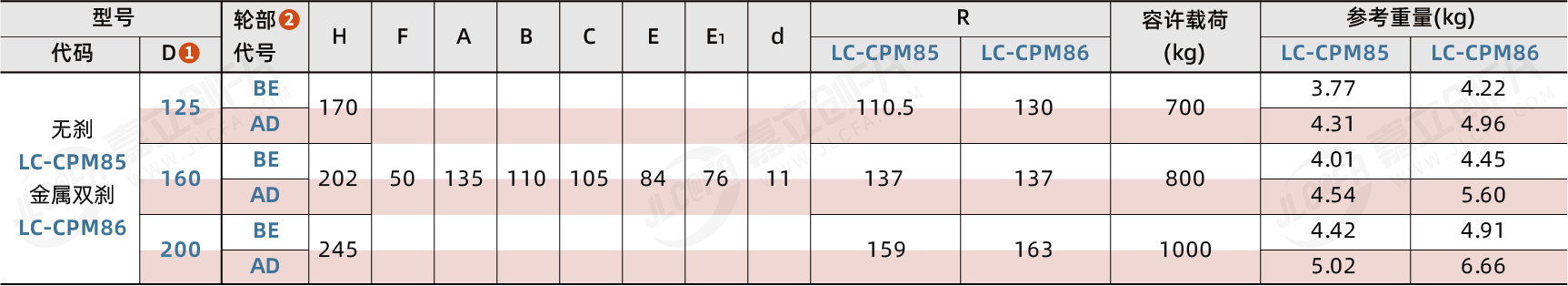 欧式系列重型脚轮 容许载荷700~1000kg 平板万向型
