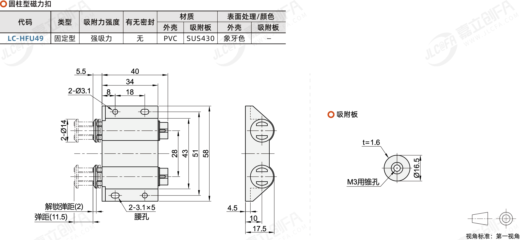 种类: 圆柱型磁力扣类型: 固定型有无密封: 无密封外壳材质: ABS吸附力强度: 强吸力吸附力方向: 侧面磁芯数量: 四磁芯颜色: 黑色