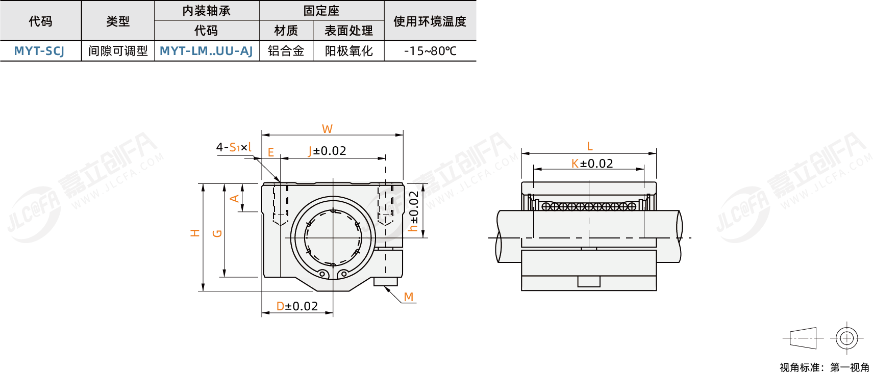 MYT 间隙可调式直线轴承箱式单元 加宽方形 单衬型 阳极氧化
