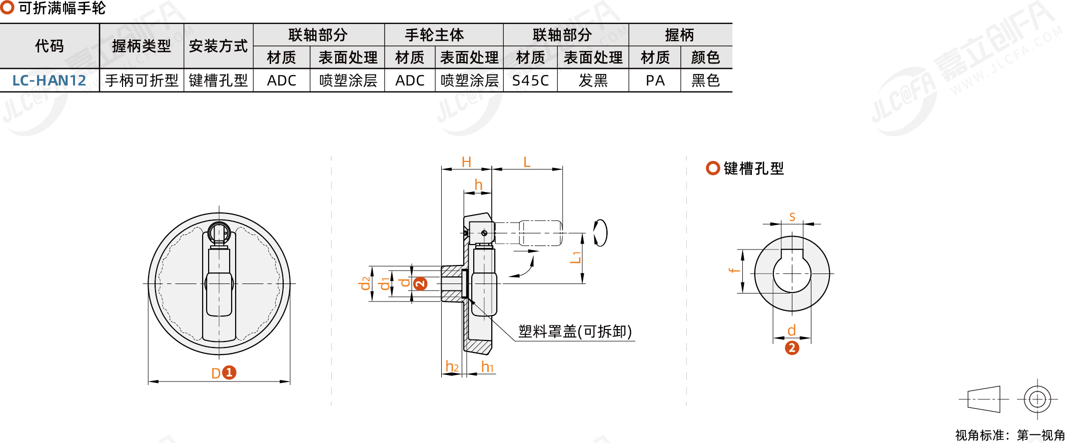 种类: 可折满幅手轮握柄类型: 手柄可折型安装方式: 键槽孔型主体材质: ADC主体表面处理: 喷塑主体颜色: 黑色,银色联轴部分表面处理: 发黑联轴部分材质: ADC