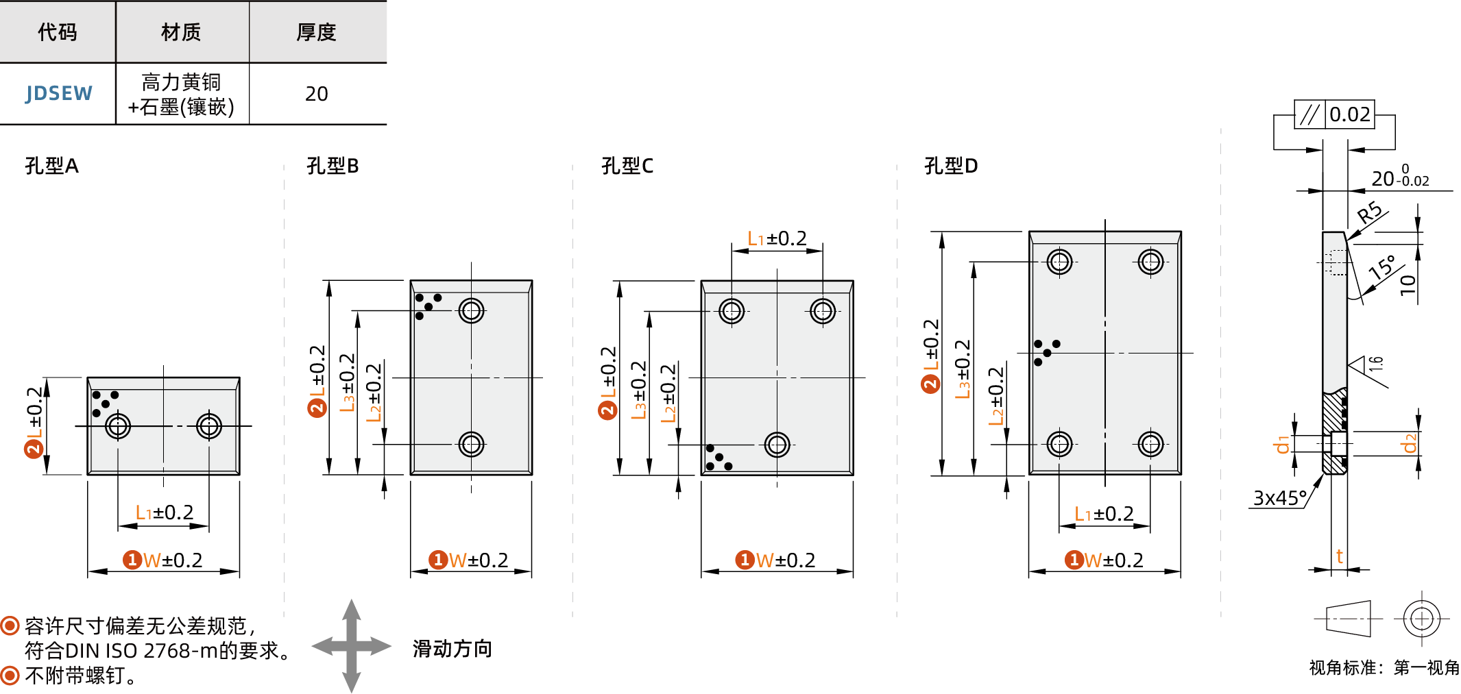 自润滑滑板 -铜合金20mm VDI3357-