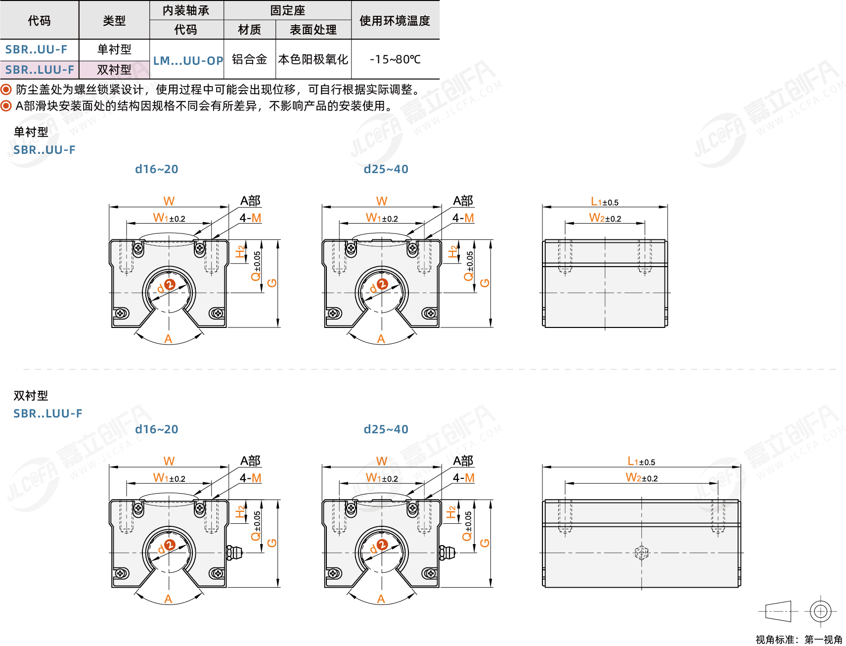 防尘式支撑轴承箱式单元 单衬型/双衬型 本色阳极氧化