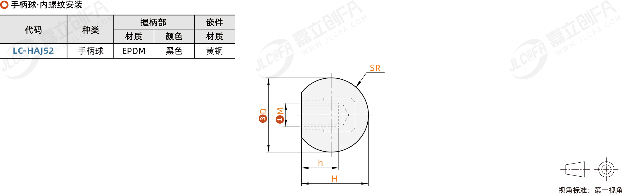 手柄球 内螺纹安装 固定型
