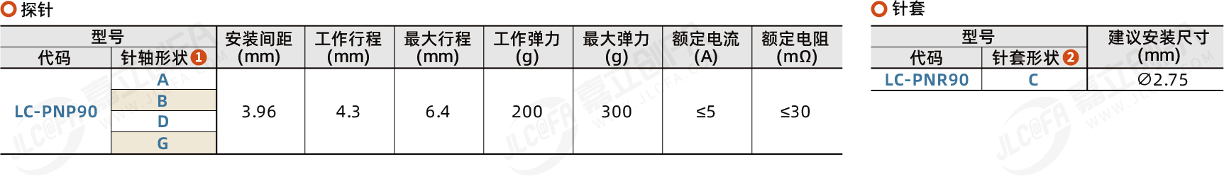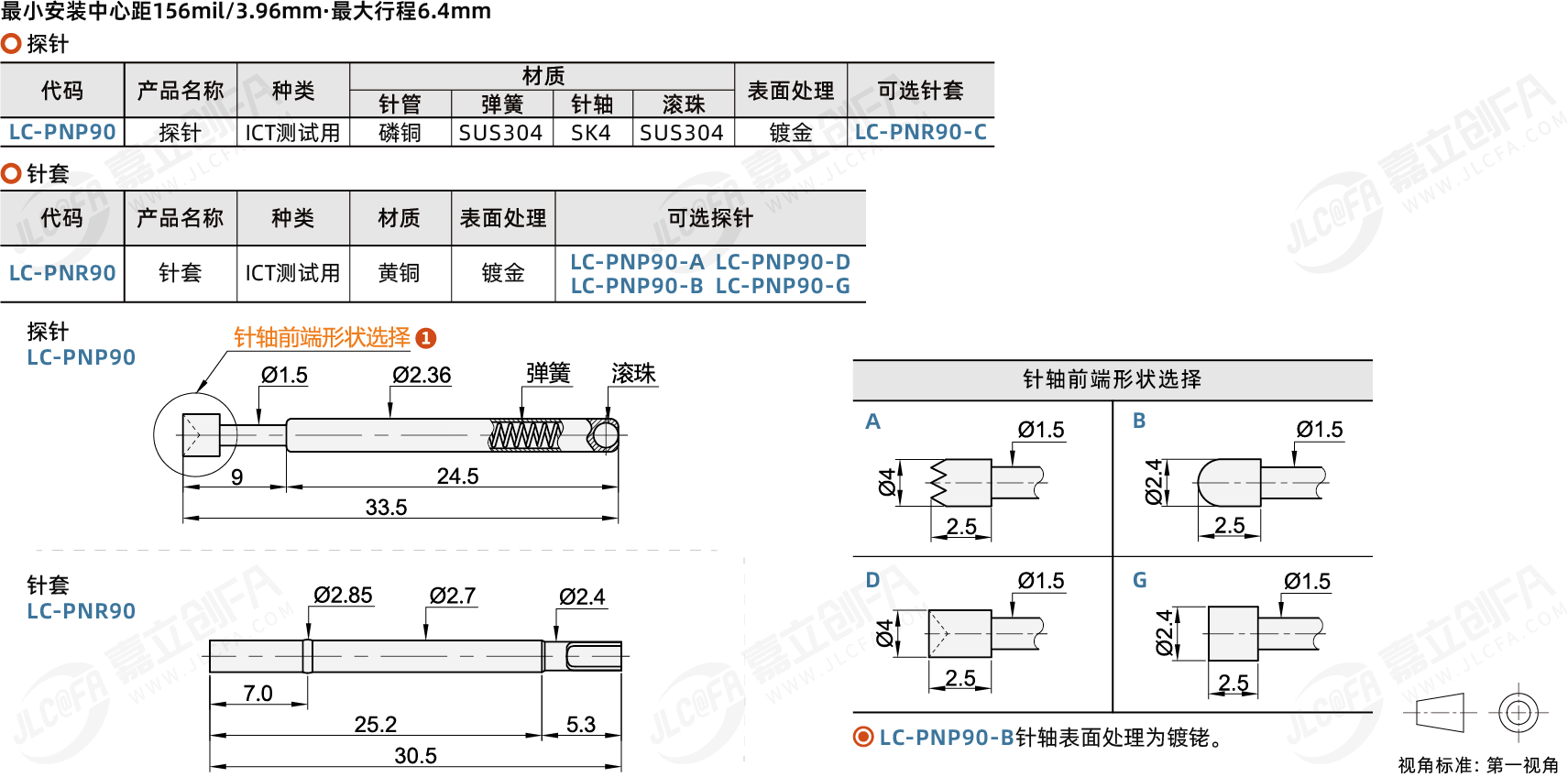 探针/针套 ICT测试用 标准型·最小安装中心距156mil/3.96mm·最大行程6.4mm