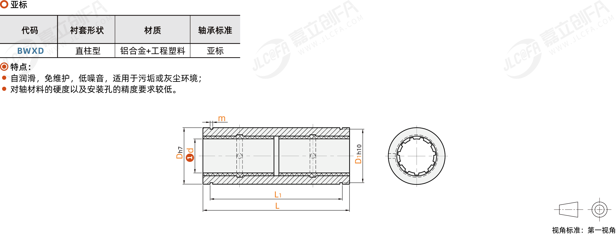 种类: 铝塑直线轴承衬套形状: 直柱型固定座材质: 铝合金滑动膜材质: 工程塑料表面处理: 阳极氧化使用温度: -50℃~90℃