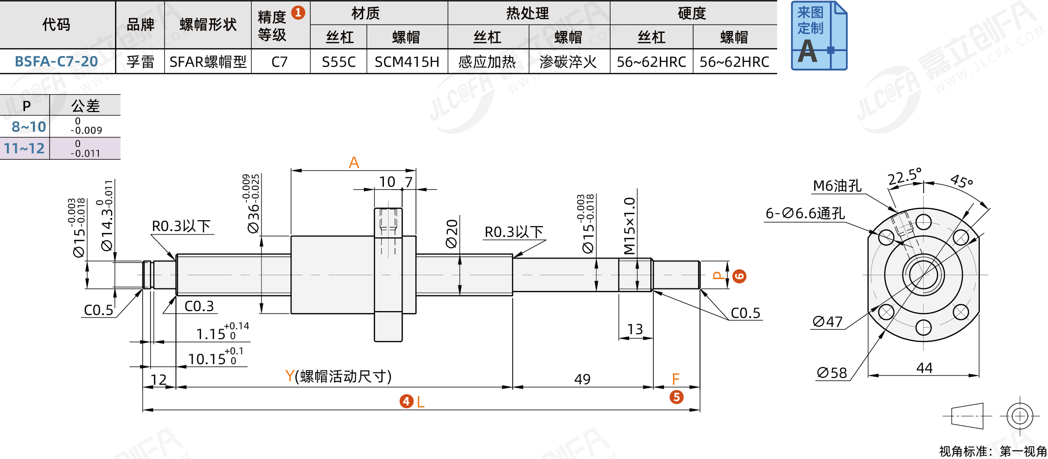 种类: 压轧滚珠丝杠精度等级: C7轴径: 20旋向: 右旋品牌: 孚雷螺帽形状: SFAR螺帽型