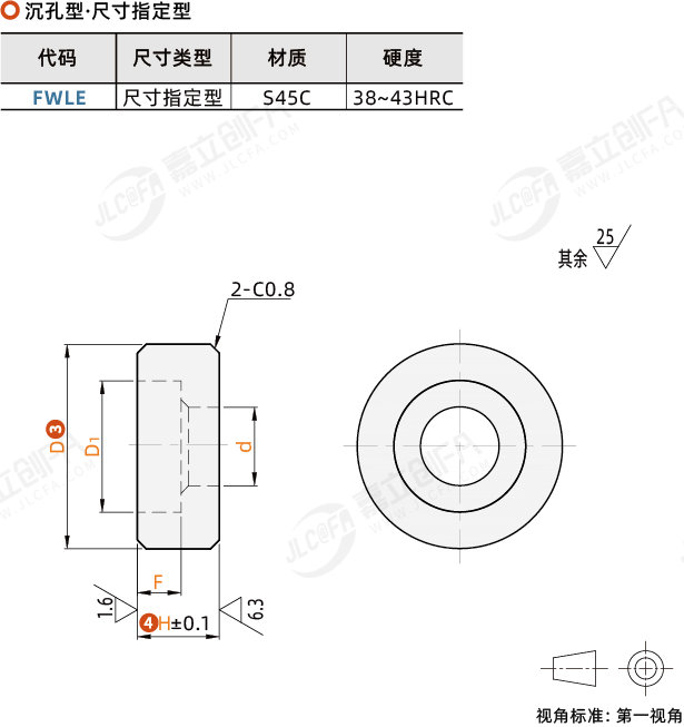 圆形挡块 沉孔型 尺寸指定型