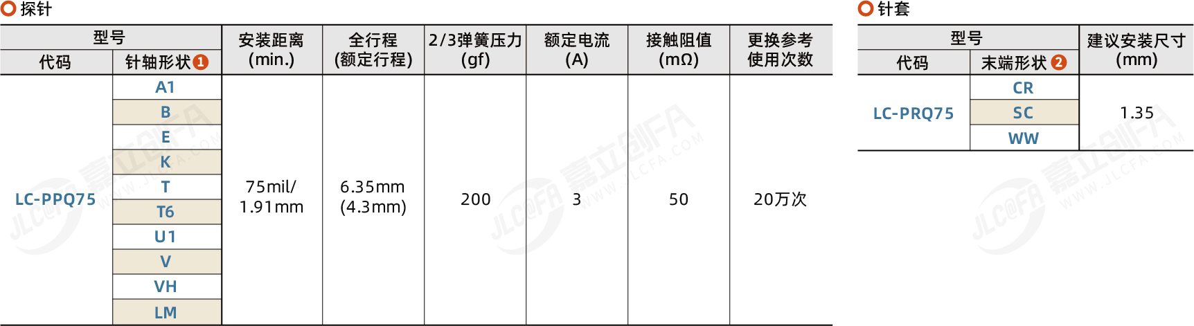 ICT测试用 标准型·最小安装中心距75mil/1.91mm·最大行程6.35mm