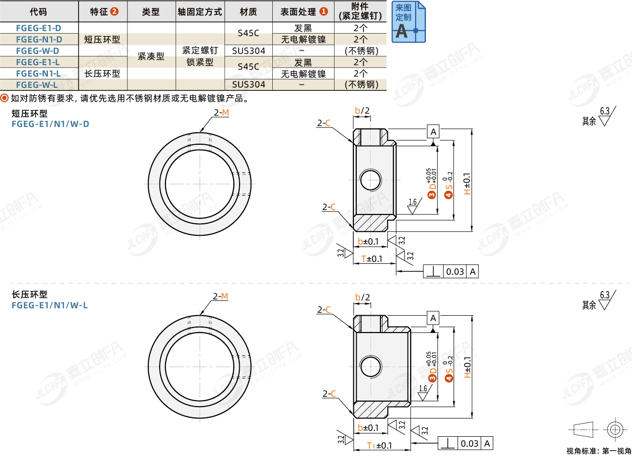 FGEG-E1-D | 短压环型 | 紧凑型 | 紧定螺钉 | S45C | 发黑 | 2个 |