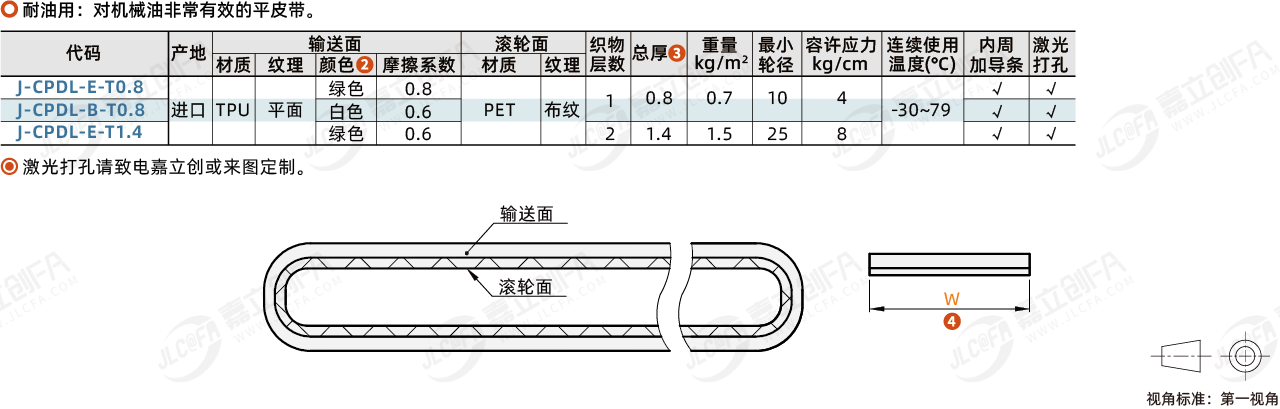 用途: 耐油用输送面材质: TPU输送面纹理: 平面产地: 进口滚轮面材质: PET滚轮面纹理: 布纹