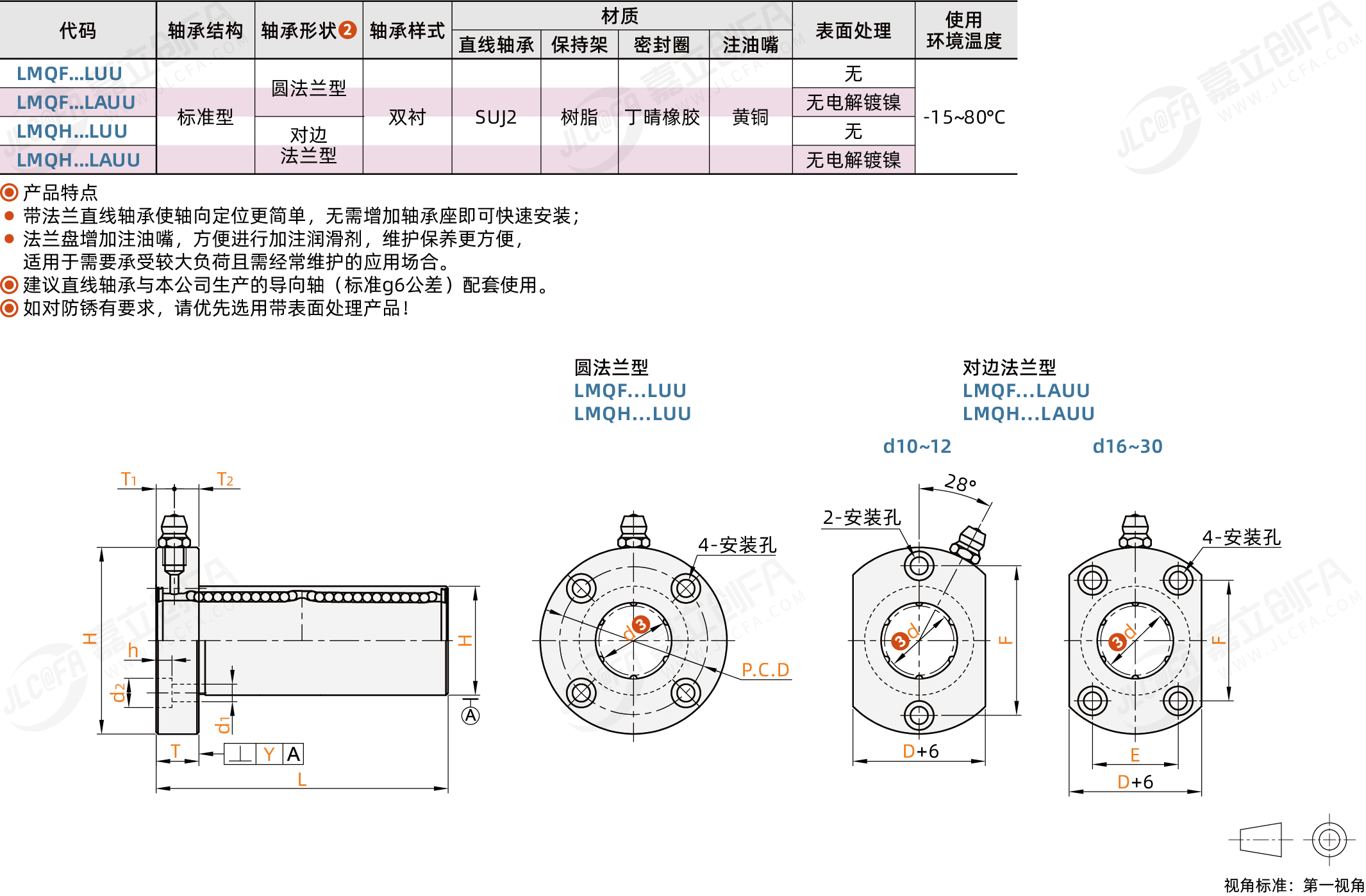 法兰型直线轴承 带注油嘴 双衬 标准法兰型