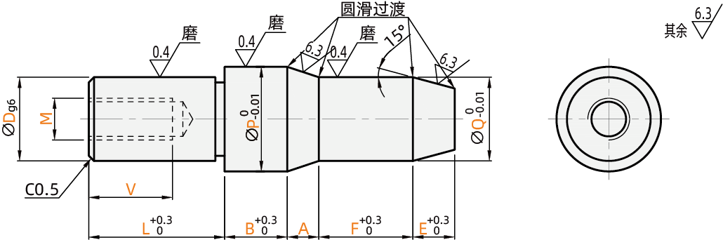 特点2:导入部为锥角形的标准类型。压入使用,可指定压入部公差:m6、p6、g6。