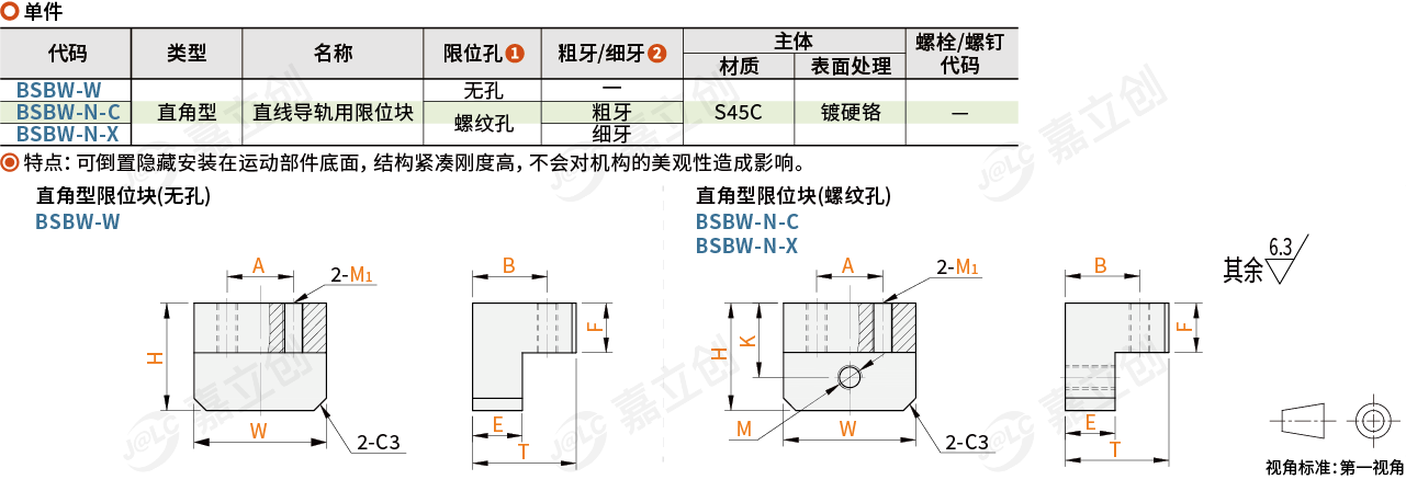 种类: 直线导轨配件直线导轨类型: 直角型名称: 直线导轨用限位块单件/组件: 单件表面处理: 镀硬铬主体材质: S45C