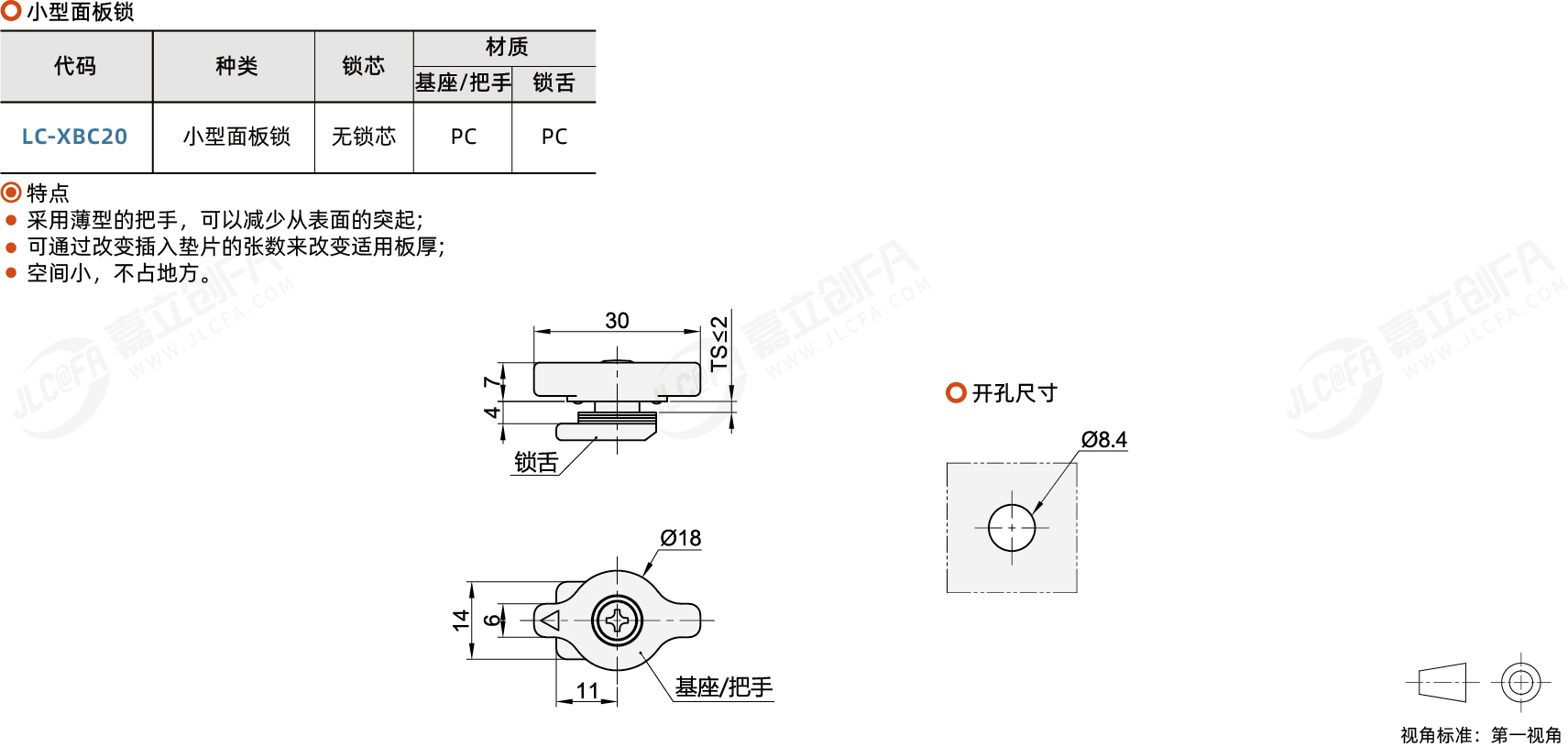 种类: 小型面板锁外形: 椭圆形锁芯种类: 无锁芯锁芯形状: 锁舌表面处理: PC主体材质: PC